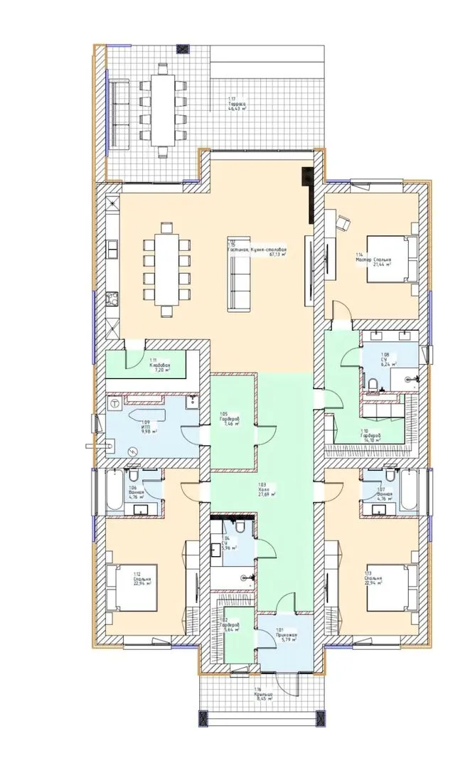 Проект Каменный одноэтажный дом с террасой