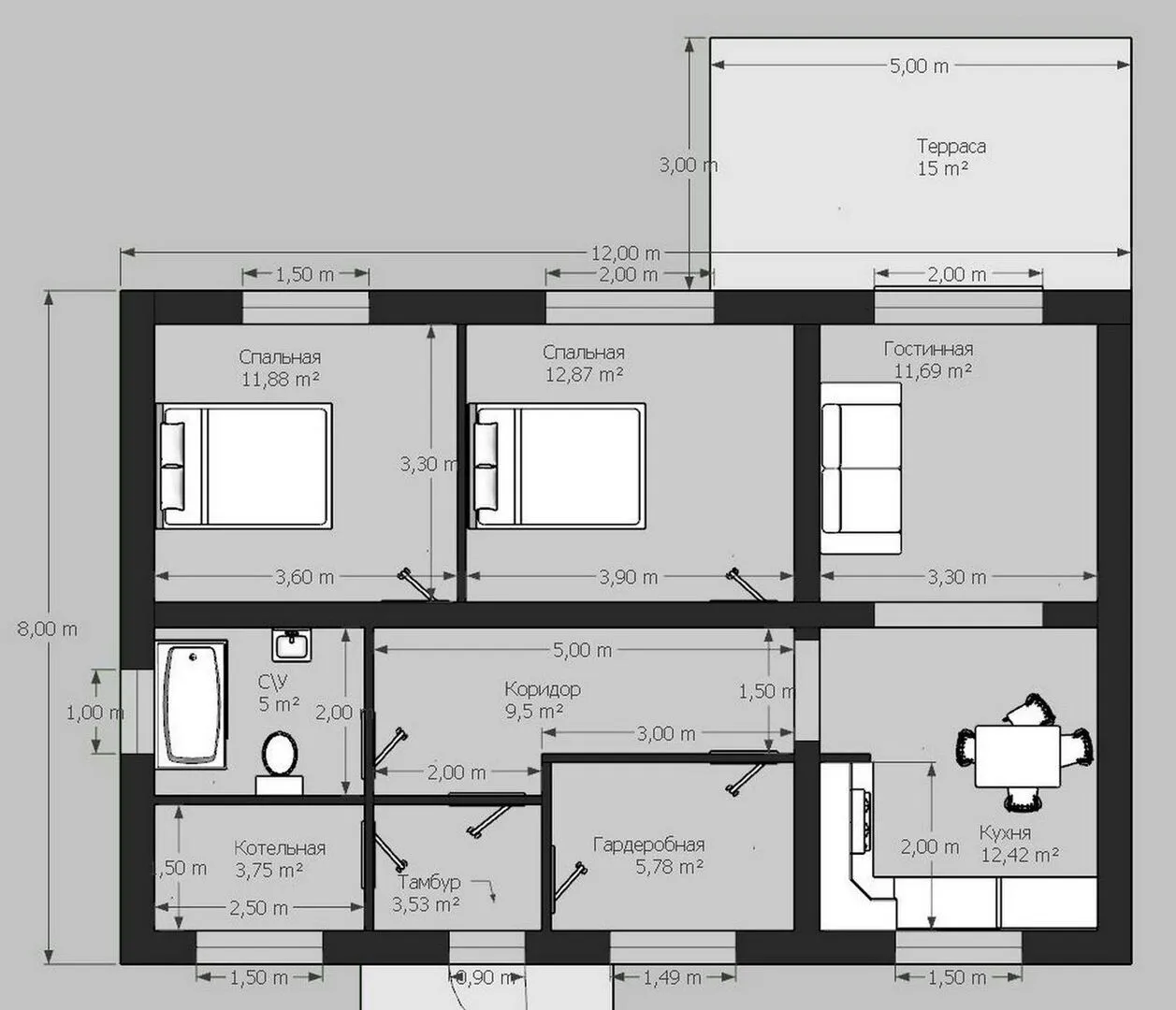 Одноэтажный дом по проекту № 9