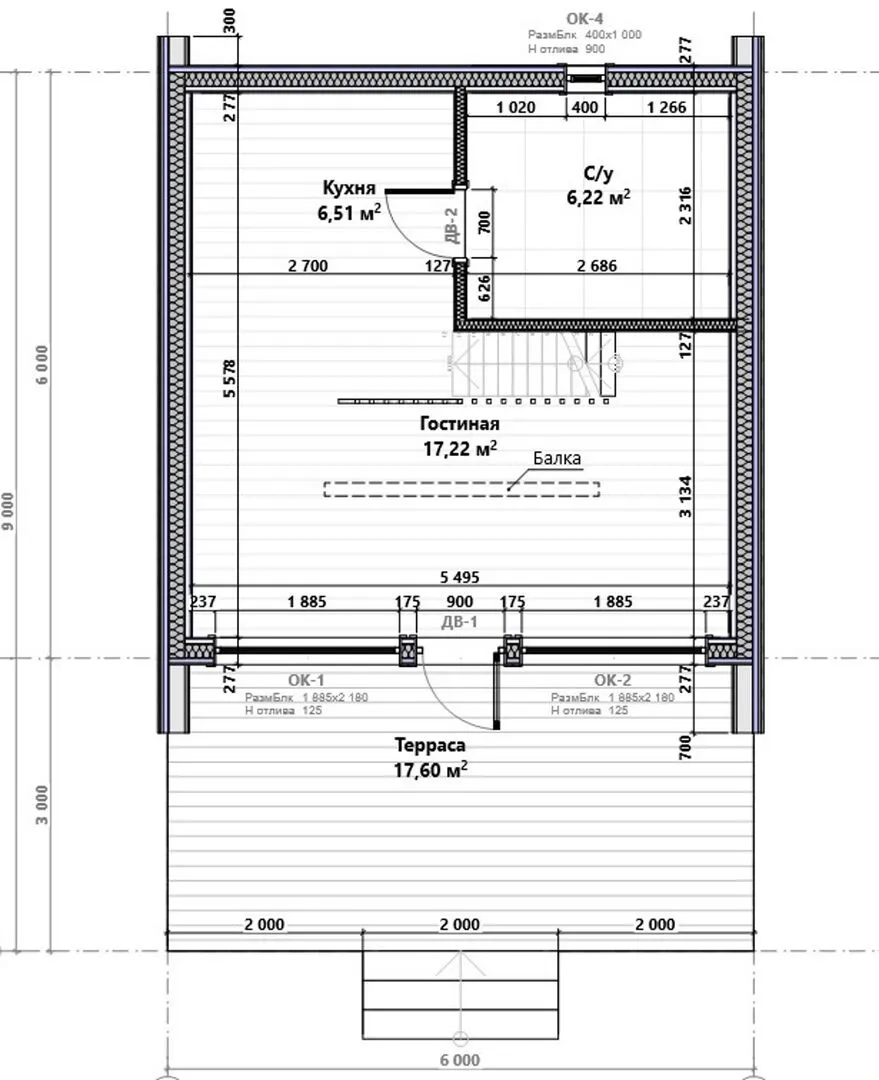 Толщина внешних стен