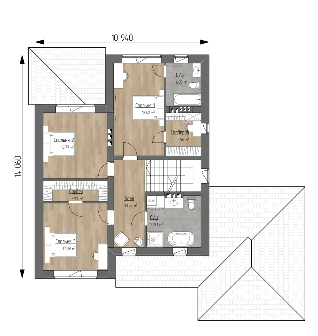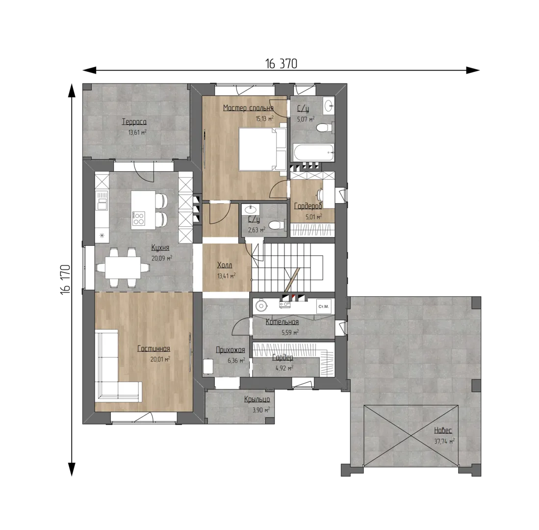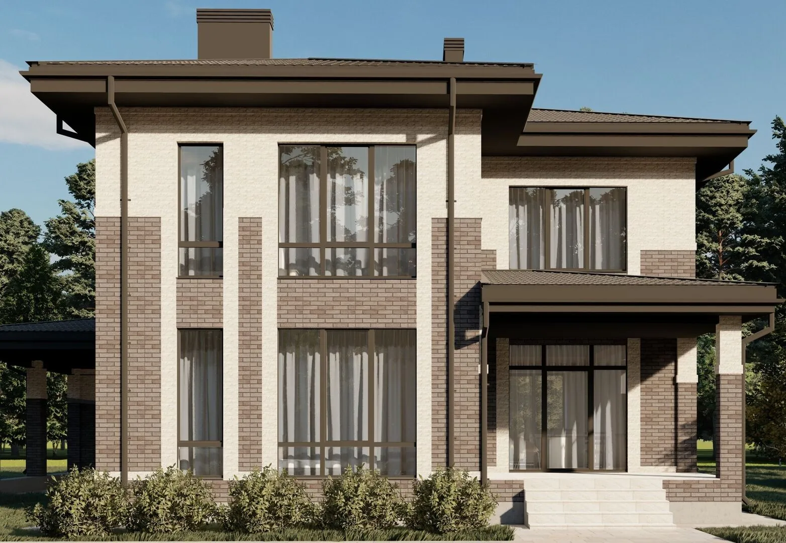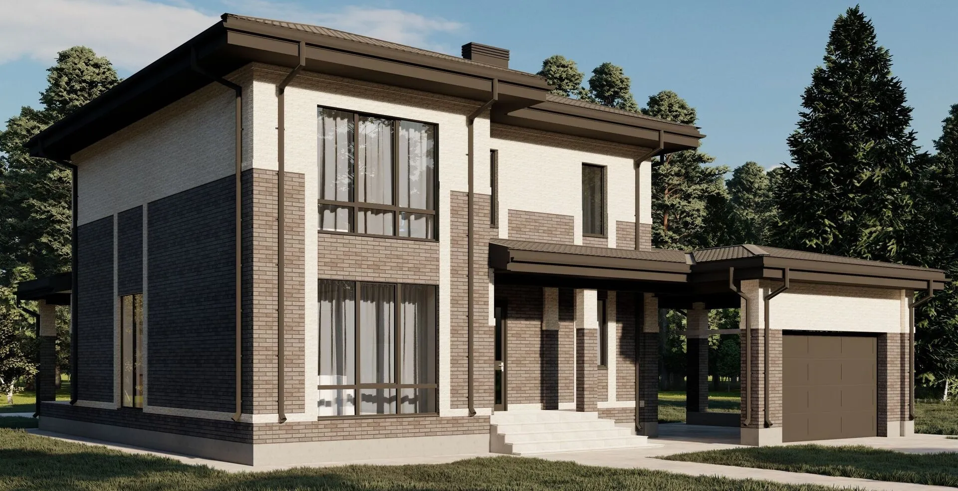**Дом 24GS‑245 – ваш идеальный уголок уюта и стиля** Этот 2‑этажный дом сочетает в себе строгую классику и практичность, созданный для круглогодичного проживания. Его каменный фасад, выполненный из керамических блоков, дарит тёплый, но при этом надёжный внешний вид, а вальмовая кровля с четырёхскатной крышей создаёт ощущение возвышенности и элегантности. Стильный фасад, в котором лаконичность встречается с традициями, привлекает взгляды и подчёркивает статусность вашего жилища. Внутреннее пространство обустроено так, чтобы дарить комфорт и приватность. В доме отсутствуют балконы и лоджии, что делает его полностью закрытым от ветра и дождя, а просторная открытая терраса приглашает к вечным летним трапезам и уютным зимним встречам с семьёй. Пристроенный гараж защищает автомобили от непогоды, а отсутствие чердачного помещения упрощает уход за домом. Весь интерьер пронизан светом и уютом, обеспечивая вам идеальные условия для спокойной и полноценной жизни в любое время года.