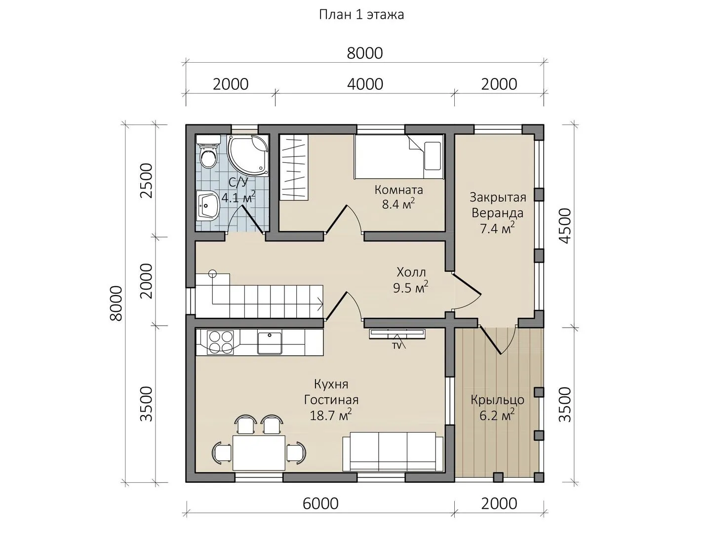 Площадь дома 75 м2