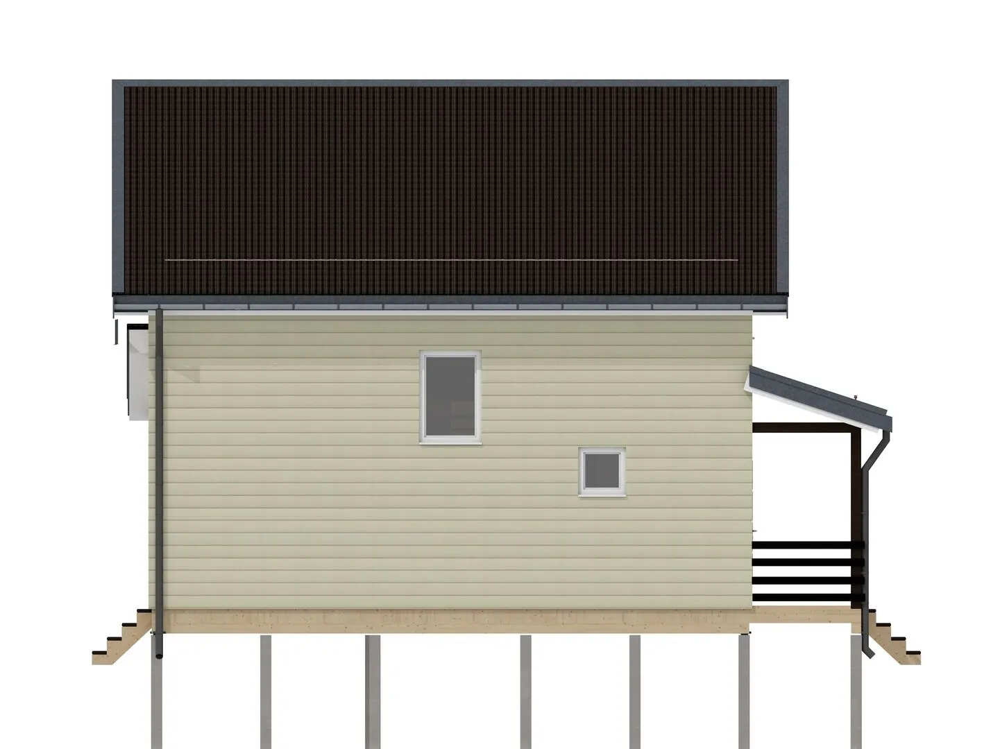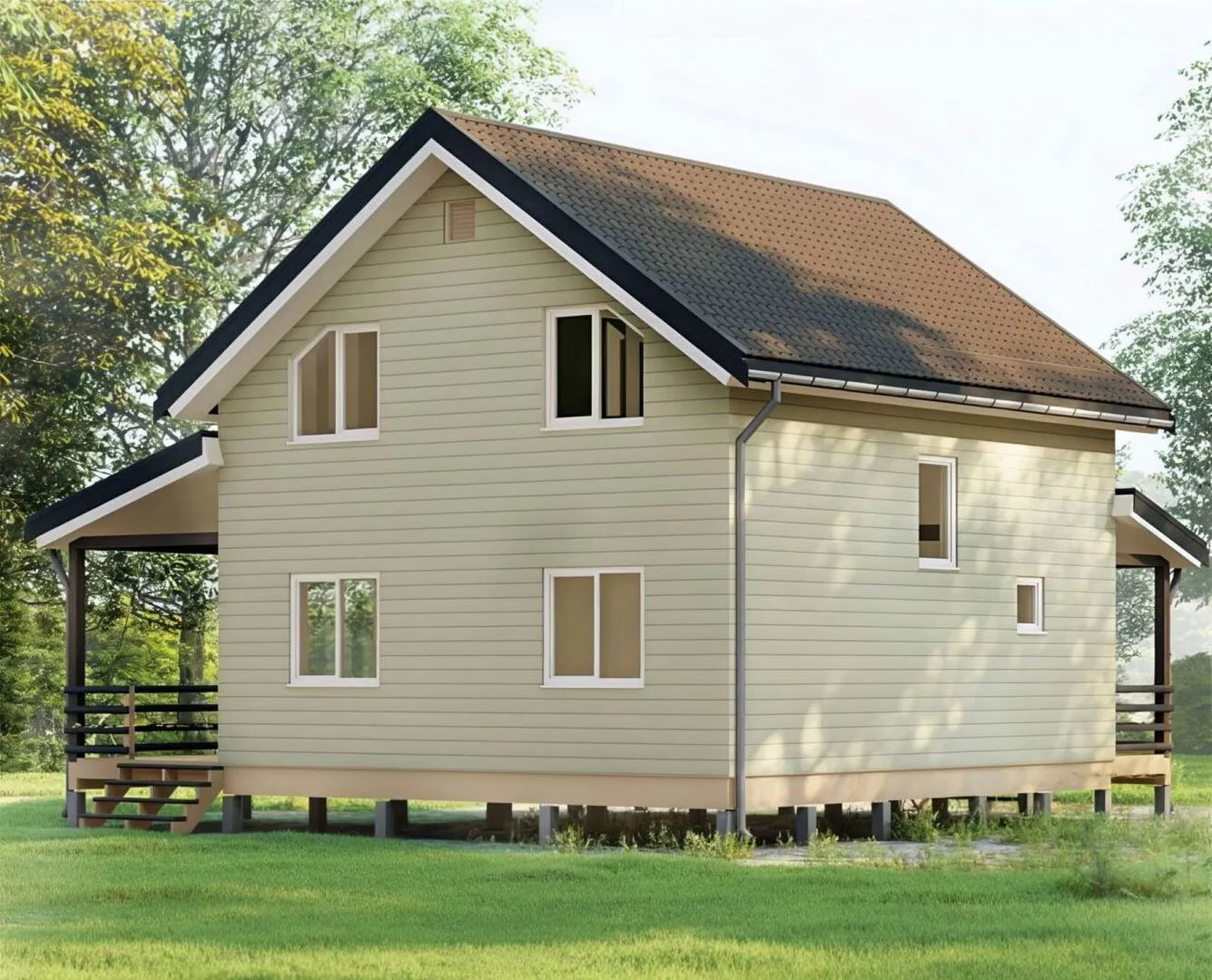 **Aнис 4** – это воплощение семейного уюта и традиционного качества, которые любят наши клиенты. Дом построен на двух уютных надземных этажах, позволяя вам спокойно располагаться в любых климатических условиях: от прохладных зим до летних жарких дней. В классическом стиле с элементами лаконичной элегантности в его деревянном каркасном облике каждый уголок пронизан теплом натурального материала, а двускатная крыша добавляет традиционную нотку русской архитектуры. Внутри вы найдёте просторные комнаты, наполненные мягким естественным светом, и планировку, оптимизированную для комфортной совместной жизни. Простая, но изысканная мебельное композиция подчёркивает дух стиля, а большие окна и открытая кухня создают атмосферу общения и семейного уюта. Справа от кухни открывается большая терраса, где вы сможете проводить вечера с семьёй, наслаждаясь спокойной атмосферой под открытым небом без лишних неудобств: нет придаточных гаражных помещений, веранд, балконов или чердачных помещений — всё это делает ваш дом простым, но при этом функциональным и удобным. Пусть **Aнис 4** станет вашим оазисом тепла и комфорта, где каждый момент наполнен уютом и естественной гармонией. Свяжитесь с нами уже сегодня, чтобы узнать подробности и запланировать личный визит — откройте для себя идеальный дом, который вы давно искали!