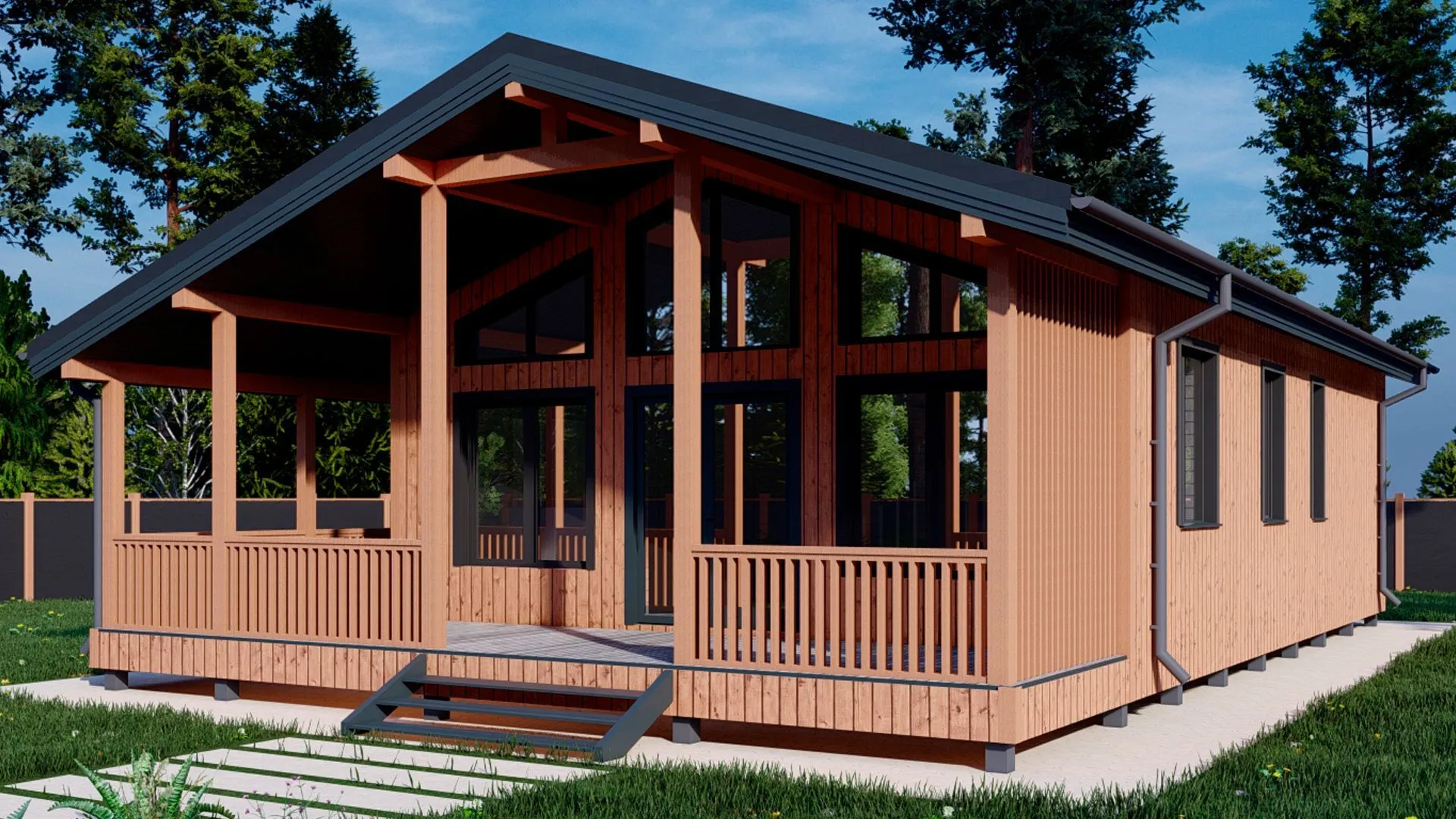 Добро пожаловать в ASPEN – уютный, одинуровневый дом, созданный для тех, кто ценит простоту и теплоту северной архитектуры. Его площадь в 127 м² раскрывает просторный интерьер, где каждая деталь проработана до мелочей: от светлых деревянных панелей до тщательно продуманных перегородок, которые придают ощущение легкости и открытости. Невозможно не заметить северное очарование – стиль «Скандинавский» пронизывает пространство, создавая атмосферу спокойствия и уюта, которые ощущаются даже в холодную пору года благодаря продуманной теплоизоляции. Внутри ASPEN приглашает к жизни своей открытой планировкой, при которой естественный свет проникает из больших больших окон, делая каждый уголок домашнего пространства живым и ярким. Приглушённые оттенки дерева и нежные акценты в интерьере создают гармоничную атмосферу, идеальную как для семейных вечеров, так и для романтических моментов. Большая терраса, выходящая из гостиной, становится любимым уголком для летних барбекю, утренних чашек кофе или просто наблюдения за рассветом. Этот дом – настоящий оазис комфорта и практичности. Премиальный деревянный каркас обеспечивает энергоэффективность и простоту ухода, а отсутствие пристроенного гаража и крытой стоянки делает жизнь в ASPEN максимально свободной и гибкой – вы можете сами решать, где разместить свой автомобиль. Зимы и лета здесь одинаково приветливы благодаря высококлассной системе утепления и двускатной крыше, которая обеспечивает надежный защиту от атмосферных осадков. Если вы ищете сочетание нордического минимализма, природных материалов и практической уюта, ASPEN станет идеальной точкой фокуса вашего нового жилья.
