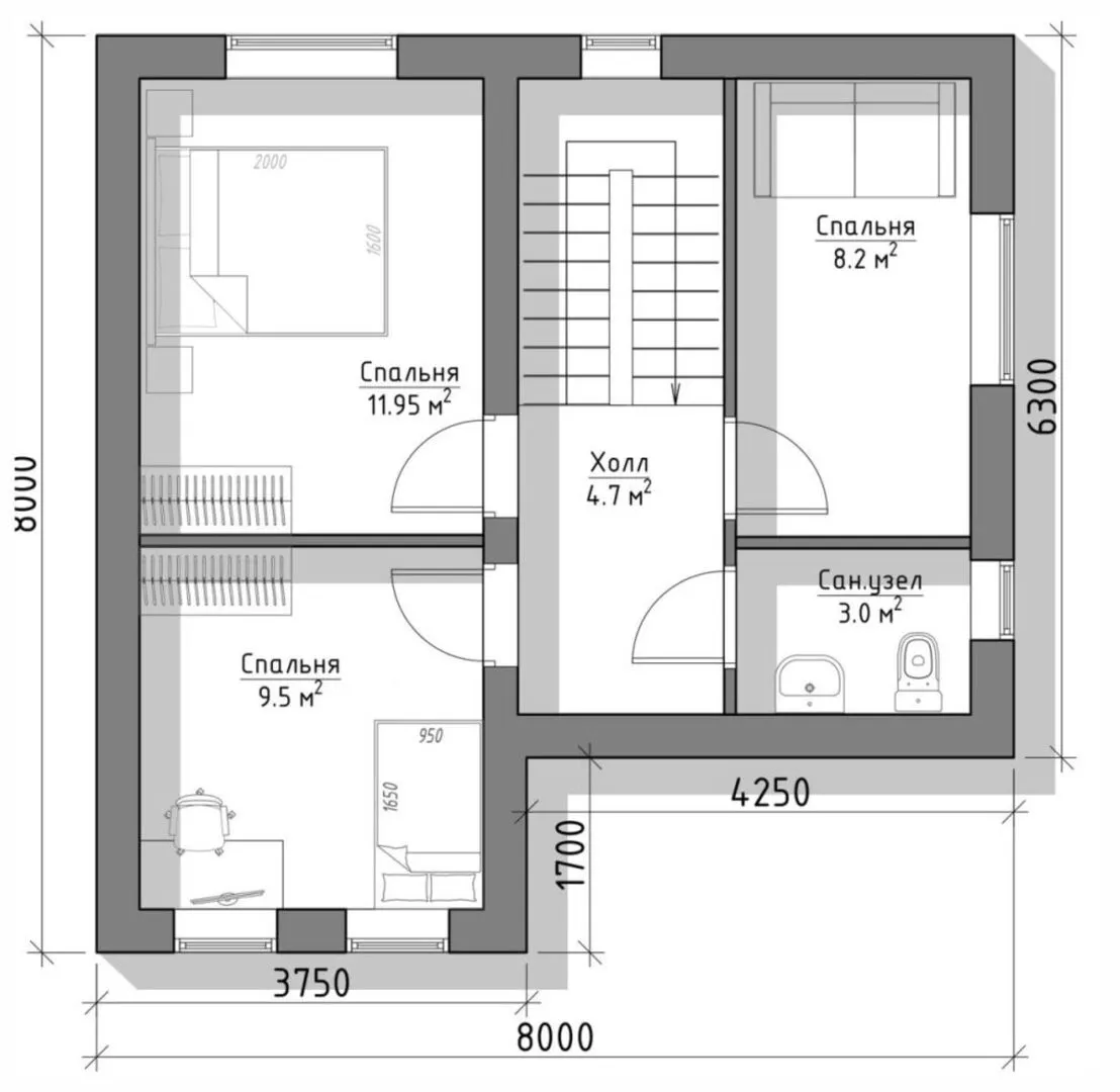 Толщина внутренних перегородок