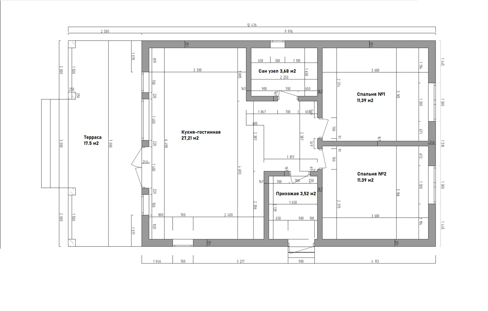 Толщина внутренних перегородок