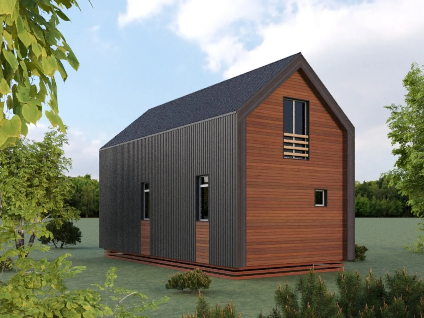 Собрав в себе всю очаровательную простоту и функциональность эпохи «70‑х, этот двухэтажный барн‑хаус становится вашим идеальным уголком уюта и гармонии. Постройка выполнена из прочного деревянного каркаса, а кровля – типичная двускатная, придающая фасаду особый характер и лёгкую, почти воздушную, ауру. Внутри дома встречаются открытые пространства, большие окна и естественный поток света, что делает каждый день ярким и теплыми. Здесь вы сможете жить круглый год с полным комфортом: просторные комнаты, удобный планировочный вариант, плавный переход от жилых зон к выходу на зелёный сад через уютную террасу. Для тех, кто ценит простоту и экологичность, идеально подойдет барн‑шик: нет пристроенного гаража и чердачных помещений, но все необходимые функциональные зоны уже присутствуют. С балконом вы откроете для себя маленький мир, а отсутствие веранд и лишних конструкций позволяет полностью окунуться в атмосферу домашнего уюта, где каждое утро начинается с ароматного кофе и мягкого солнечного света.