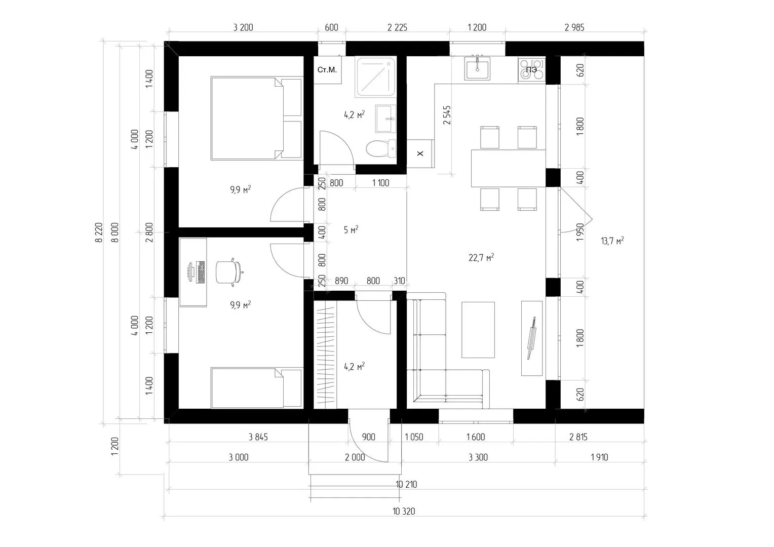 Барнхаус 8х10м (2 спальни)