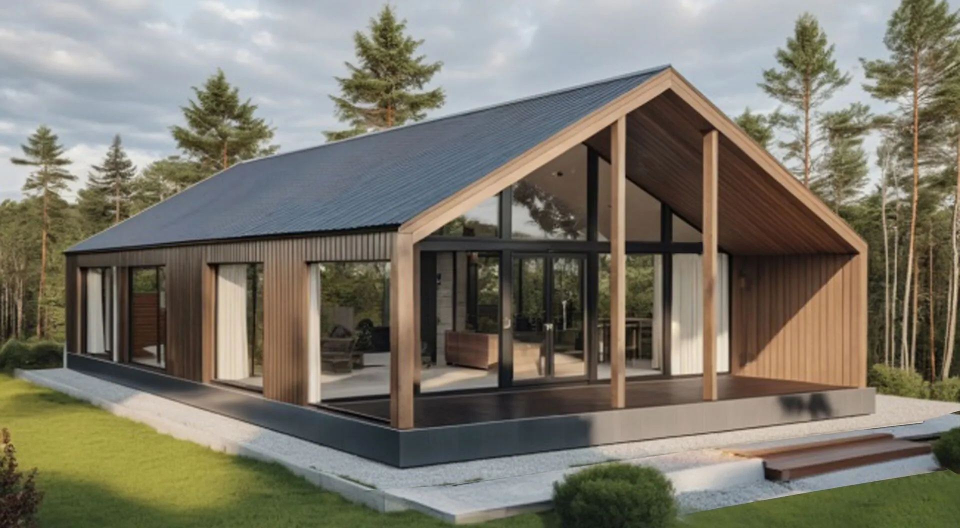 Барханхус «Idolhouse 116» – это настоящий уголок уюта, где традиции деревянного строительства и современный комфорт сливаются в гармоничную целостность. Современный, но не вычурный фасад, выполненный из высококачественного деревянного каркаса, привлекает взгляд своей легкой элегантностью. Двускатная крыша не только подчёркивает характер стиля барнхауса, но и создаёт оптимальный климат внутри, позволяя жильцам наслаждаться круглогодичным проживанием в идеальных условиях. Небольшое, но продуманное пространство первого этажа обустроено так, чтобы каждая деталь придавалась уютом и функциональностью. Просторные комнаты приглашают к семейным традициям, а лёгкая, но прочная деревянная конструкция придаёт ощущение защищённости. Важным элементом становится утренняя панорама, открытая просторной террасой: здесь можно наслаждаться рассветом, а в вечернее время – пить чай под звёздами, не выходя из дома. Без балконов и веранд, дизайн акцентирует внимание на открытых, воздушных пространствах, создающих ощущение свободы и лёгкости жизни.