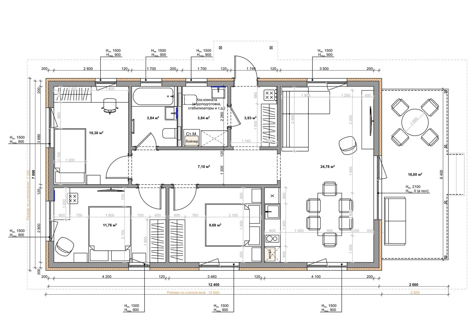 Толщина внешних стен