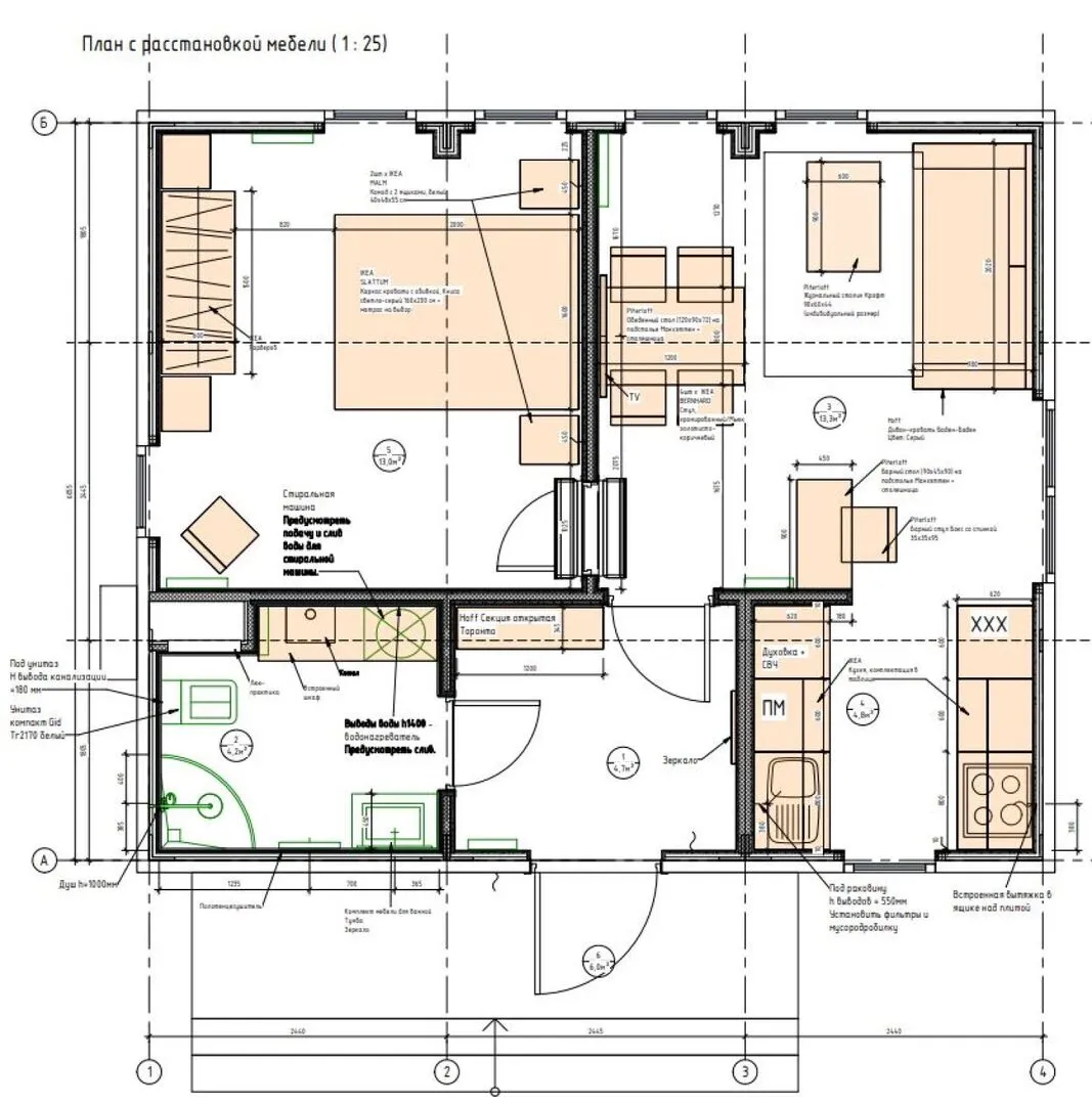 44 м2