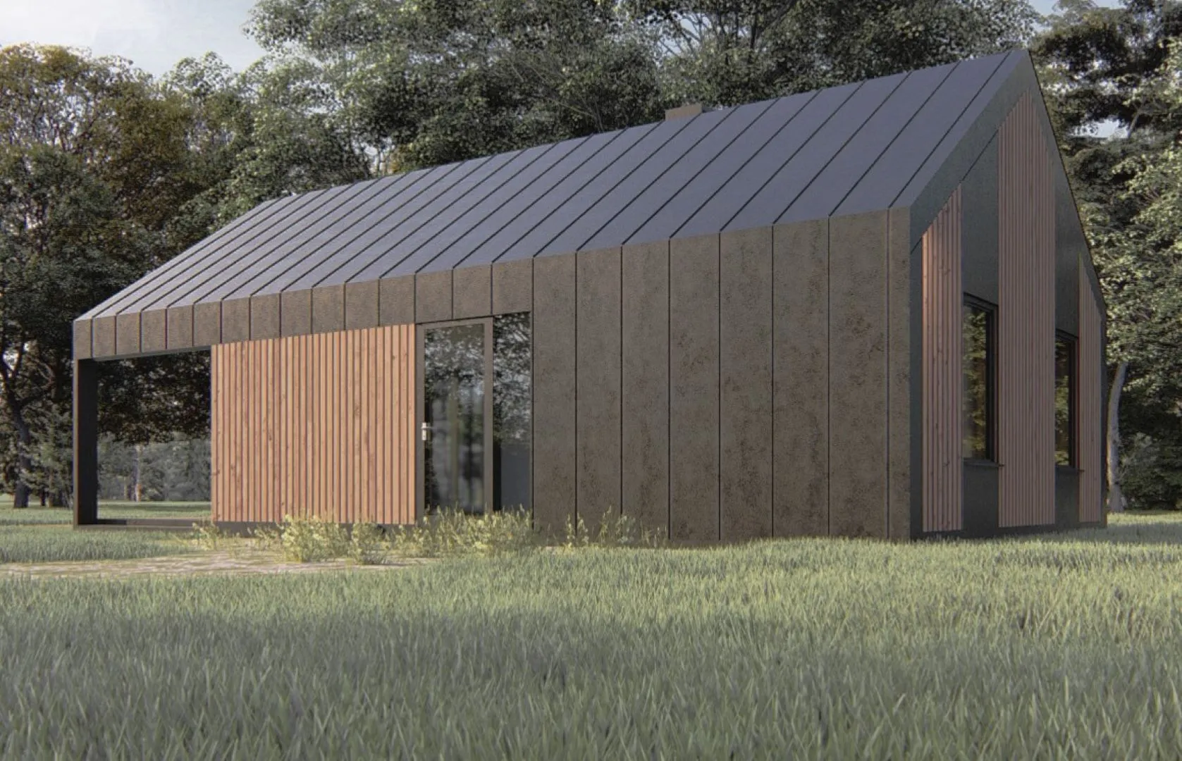 **CERTSHAUS50** – это очаровательный шедевр в стиле барнхаус, который объединяет традиционную эстетику старых американских амбушуров и современные удобства современного жилья. Один надземный этаж, выполненный из цельных деревянных каркасов, создаёт ощущение открытости и воздушности, а просторная, светлая обстановка позволяет погрузиться в атмосферу уюта и простоты. Зимой, благодаря качественной теплоизоляции, внутри всегда тепло, а в летнюю порцию тепло от ветра приятно согревает душу – круглогодичное проживание превращается в настоящий комфорт. Отсутствие балконов, веранд и крытых гаражей делает дом менее шумным и более защищённым от непогоды. Вместо этого, здесь стоит просторная терраса, идеальная для летних барбекю, чтения под открытым небом или просто неспешных прогулок в саду. Фасад, выполненный из деревянных блоков, придаёт дому очаровательный, «rustic» вид, а двускатная крыша добавляет ему характерной элегантности, контрастируя с современными линиями интерьера. Этот дом – точный баланс традиций и современности, идеально подходящий для тех, кто ценит гармонию природы и комфорта. Он приглашает вас открыть для себя новую главу домашней жизни, где каждый уголок – это история, а каждое утро начинается с улыбки. Ваш новый уютный дом ждёт именно вас.