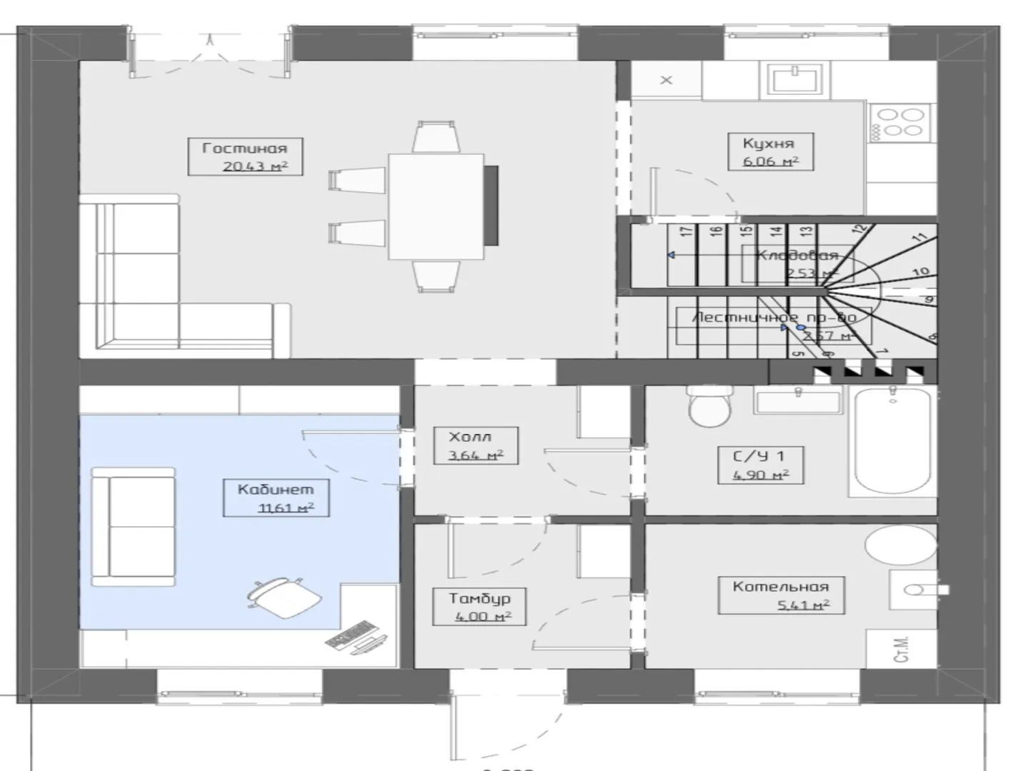 Площадь дома 124 м2