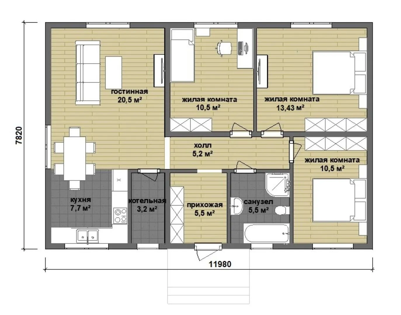 Заказать конусльтацию по:Дом 82 м2, 1 этаж (4C-82)