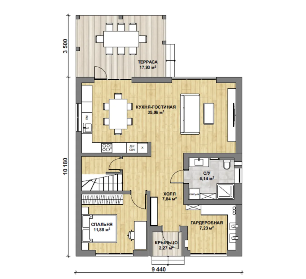 Совмещенная кухня-гостиная