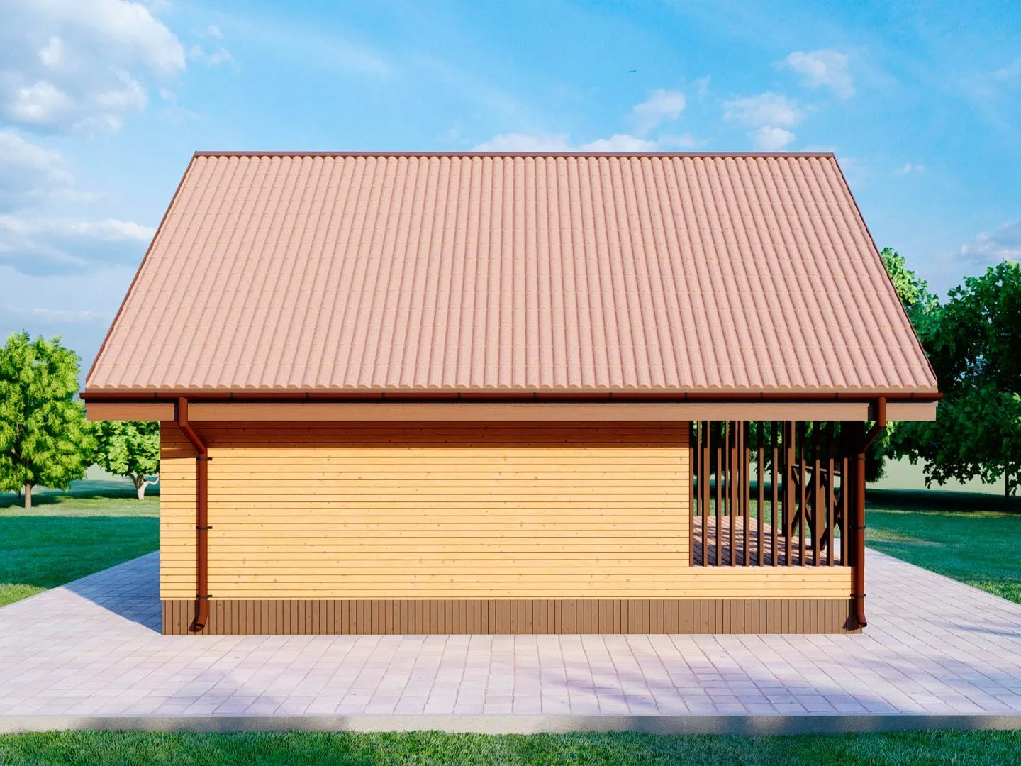 Проект Каменный одноэтажный дом с террасой