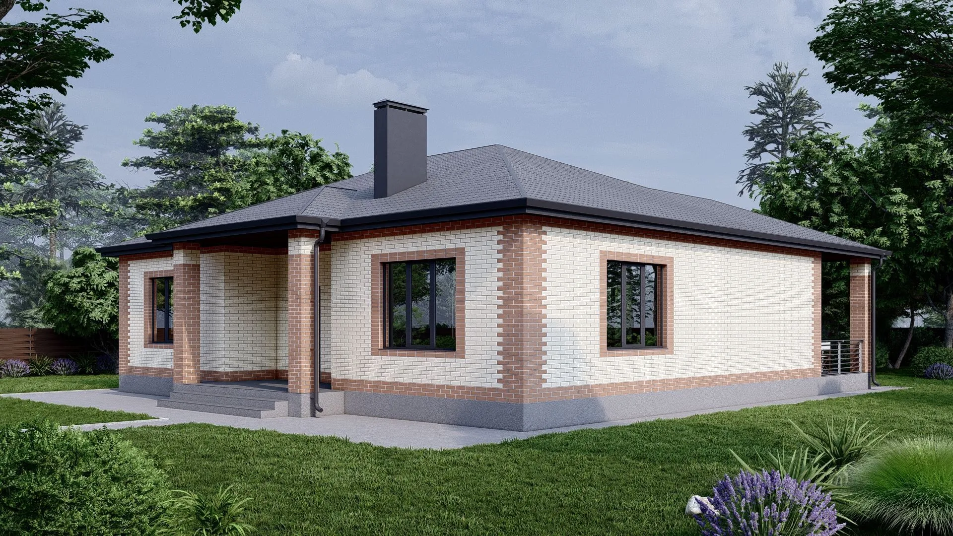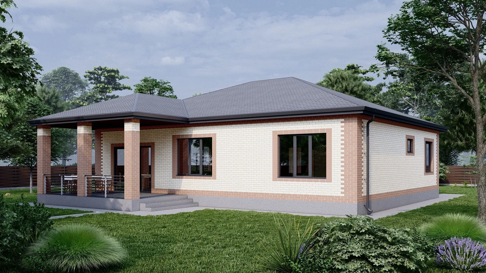 Проект Каменный одноэтажный дом с террасой
