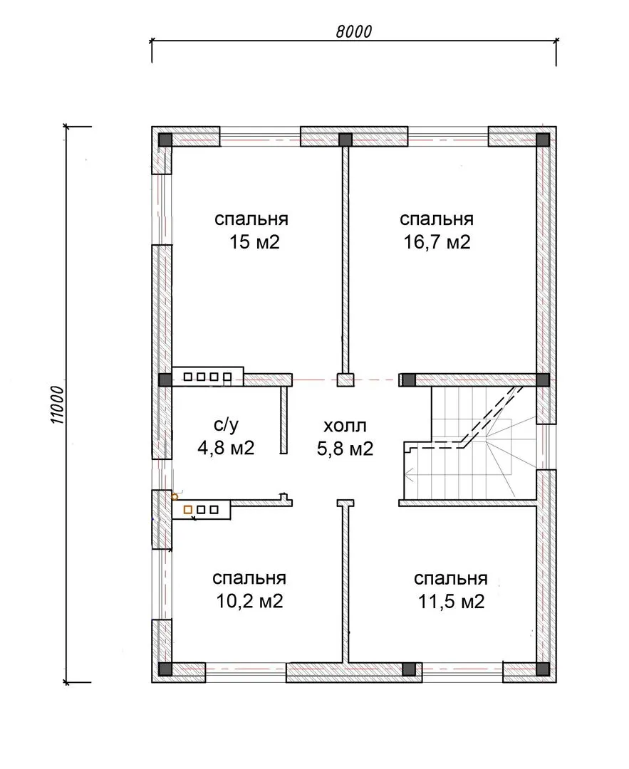Двухэтажной дом для большой семьи "Проект" Универсальный