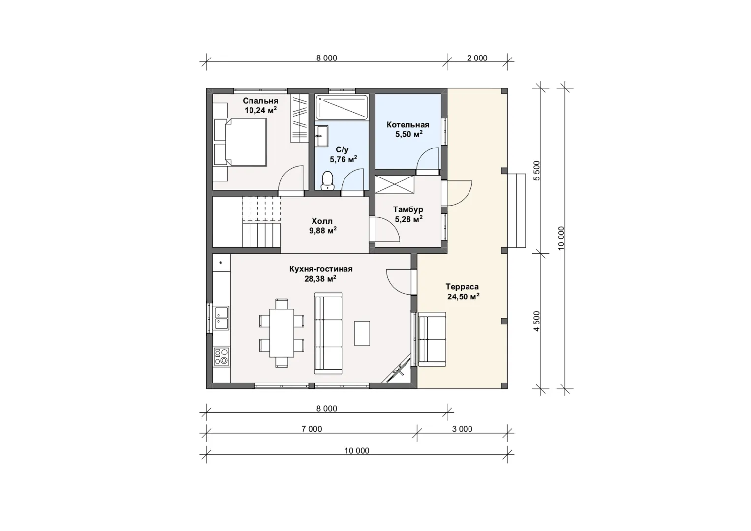 Совмещенная кухня-гостиная