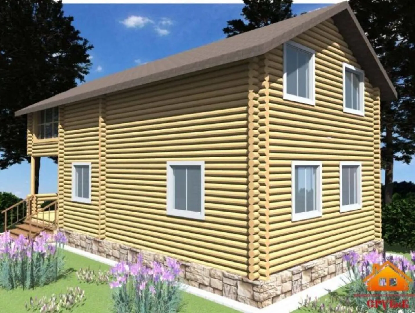 Двухэтажный дом из бревна с балконом