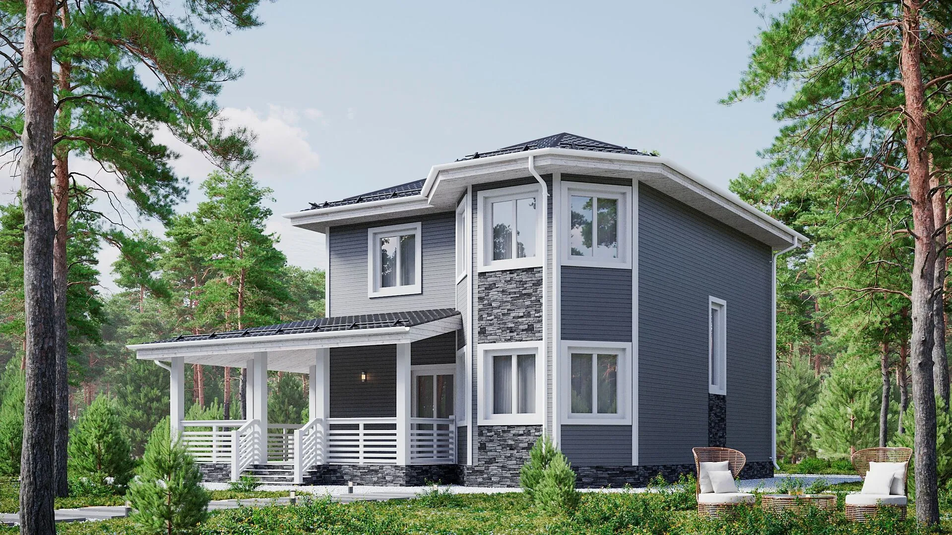 Добро пожаловать в ваш будущий уютный уголок, где каждая деталь была обдумана с точки зрения комфорта и эстетики. Этот двухэтажный дом по проекту №1 в европейском стиле создаёт ощущение лёгкой элегантности и неповторимой гармонии. С открытыми просторными помещениями, обустроенными на два надземных этажа, здесь легко обустроить все зоны жизни – от светлого рабочего уголка до уютного семейного лаунж-зоны. Благодаря четырехскатной (вальмовой) крыше, дома получает не только типичную европейскую очёкность, но и прочность, способную выдержать любые климатические условия, позволяя жить здесь круглый год, не беспокоясь о погоде. Сейчас ваш комфорт начинается уже с момента входа. Веранда с мягким естественным освещением приглашает провести вечера у свечей и чашки ароматного кофе, а просторная терраса – идеальное место для барбекю и вечеринок с друзьями. Внутри вам открывается чердачное помещение, которое можно превратить в студию творчества, домашнее кино или уютную гостиную для гостей – ваш выбор, а возможности не ограничены. Отсутствие балконов и лоджий подчёркивает чистоту линий конструкции, а внутренняя планировка сохраняет визуальную простоту и тишину, создавая атмосферу благополучия и покоя. Особое внимание стоит уделить материалам: внешние стены состоят из SIP‑панелей, что не только обеспечивает высокий уровень тепло- и звукоизоляции, но и делает ваш дом экологически чистым, энергоэффективным и легко обслуживаемым. Благодаря такой конструкции ваш дом будет экономить энергию на отопление и кондиционирование, а также сохранять тепло в холодное зимнее утро и прохладу в жаркое летнее время. Все эти элементы вместе делают этот проект идеальным решением для тех, кто ищет уют, стиль и энергоэффективность в одном доме.