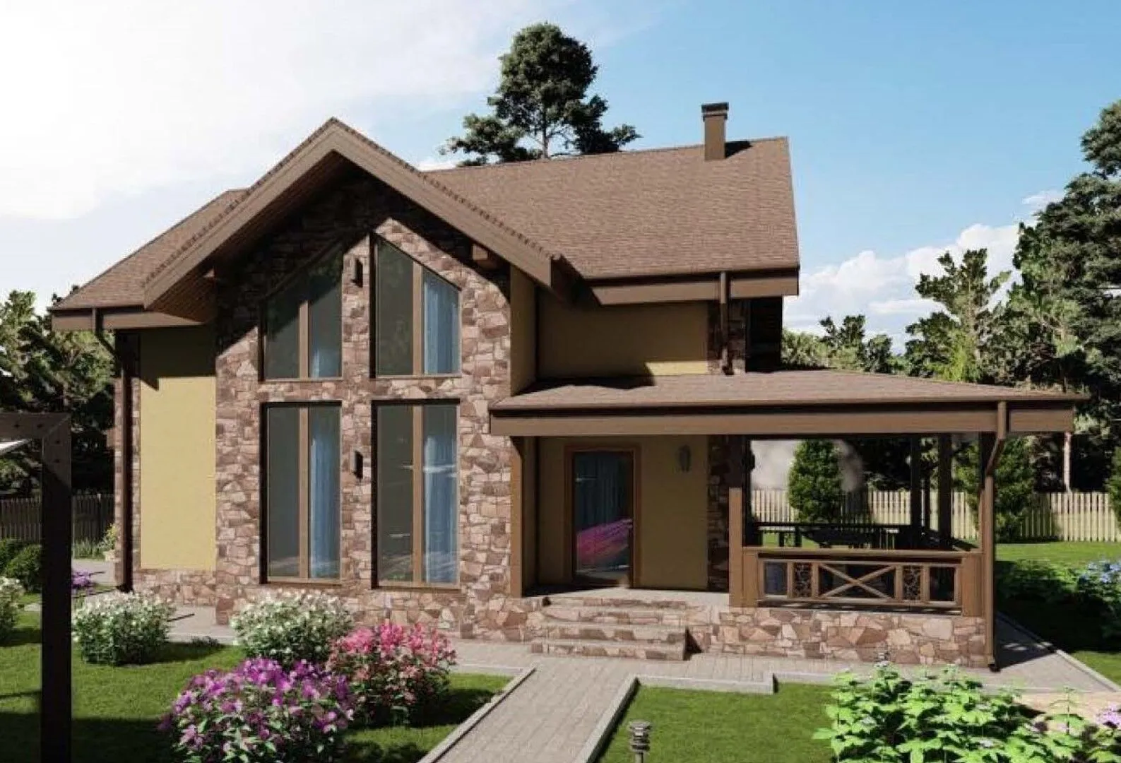 Двухэтажный дом со вторым светом и террасой S-143