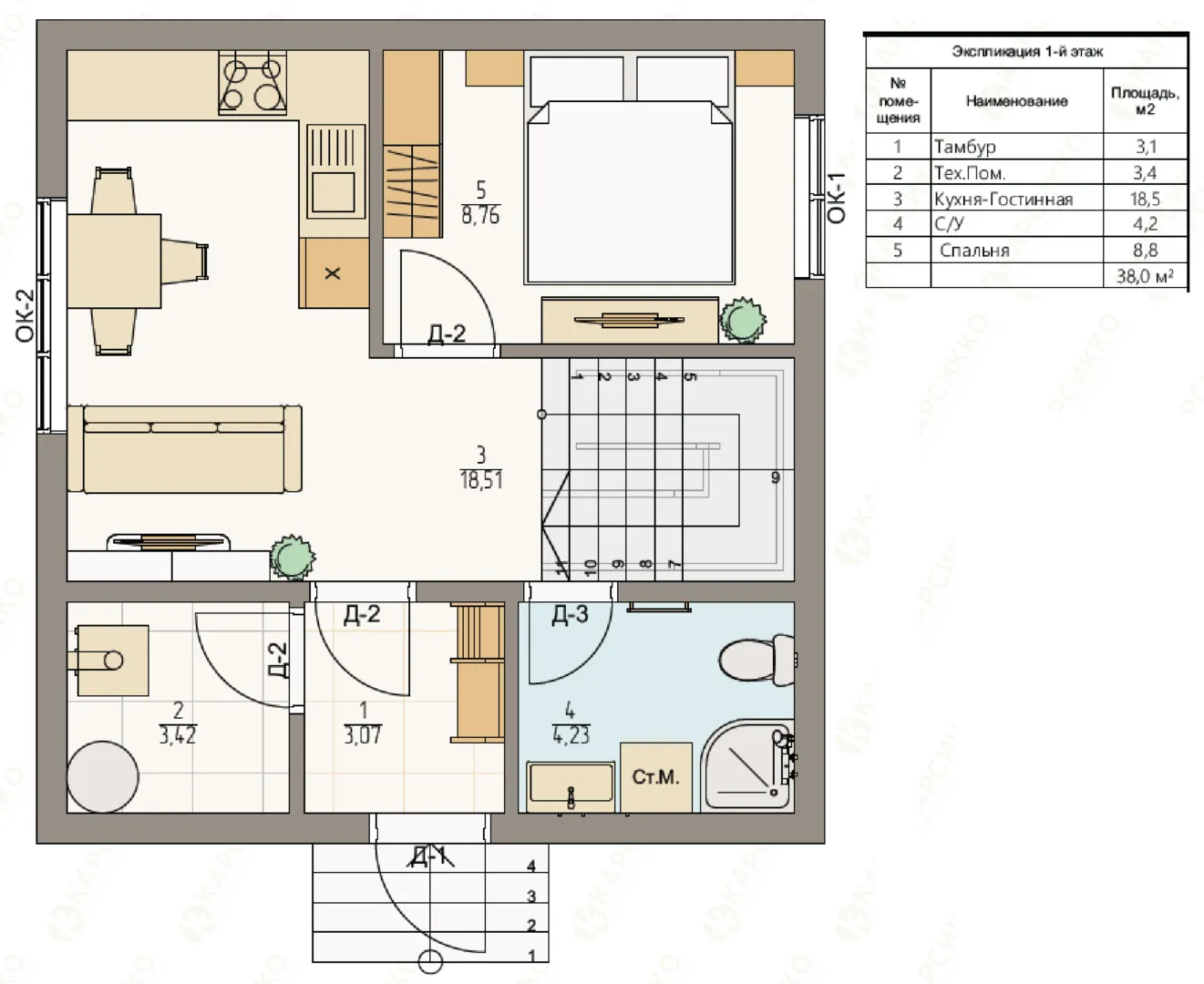Двухэтажный дом в классическом стиле К-76