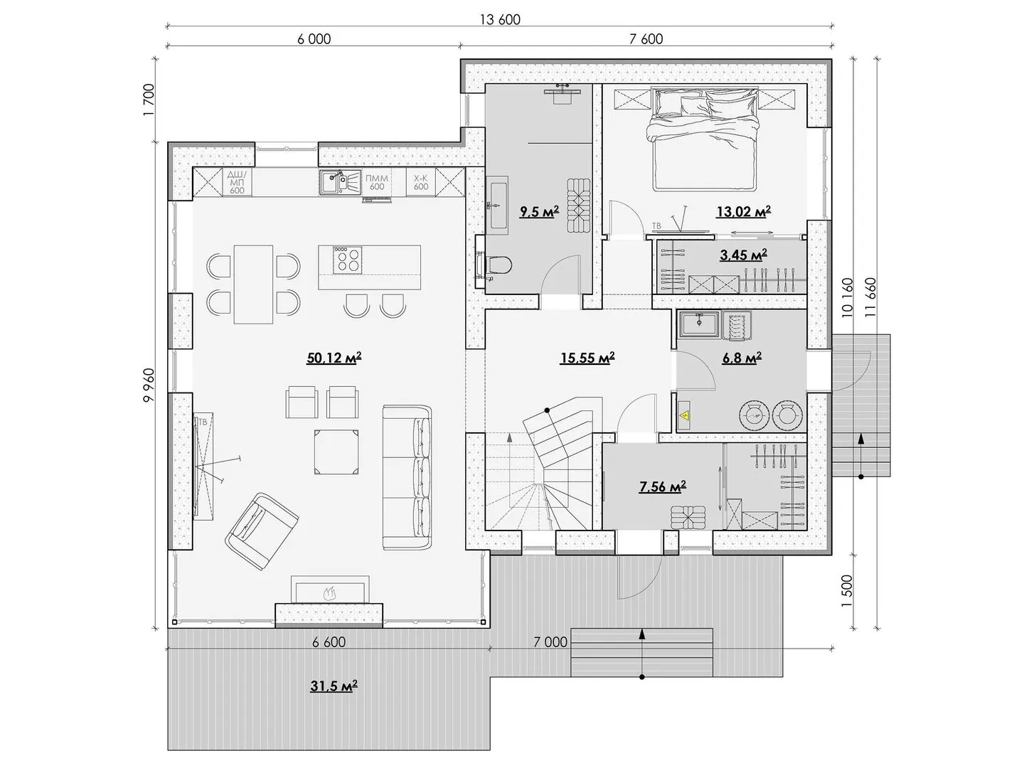 Совмещенная кухня-гостиная