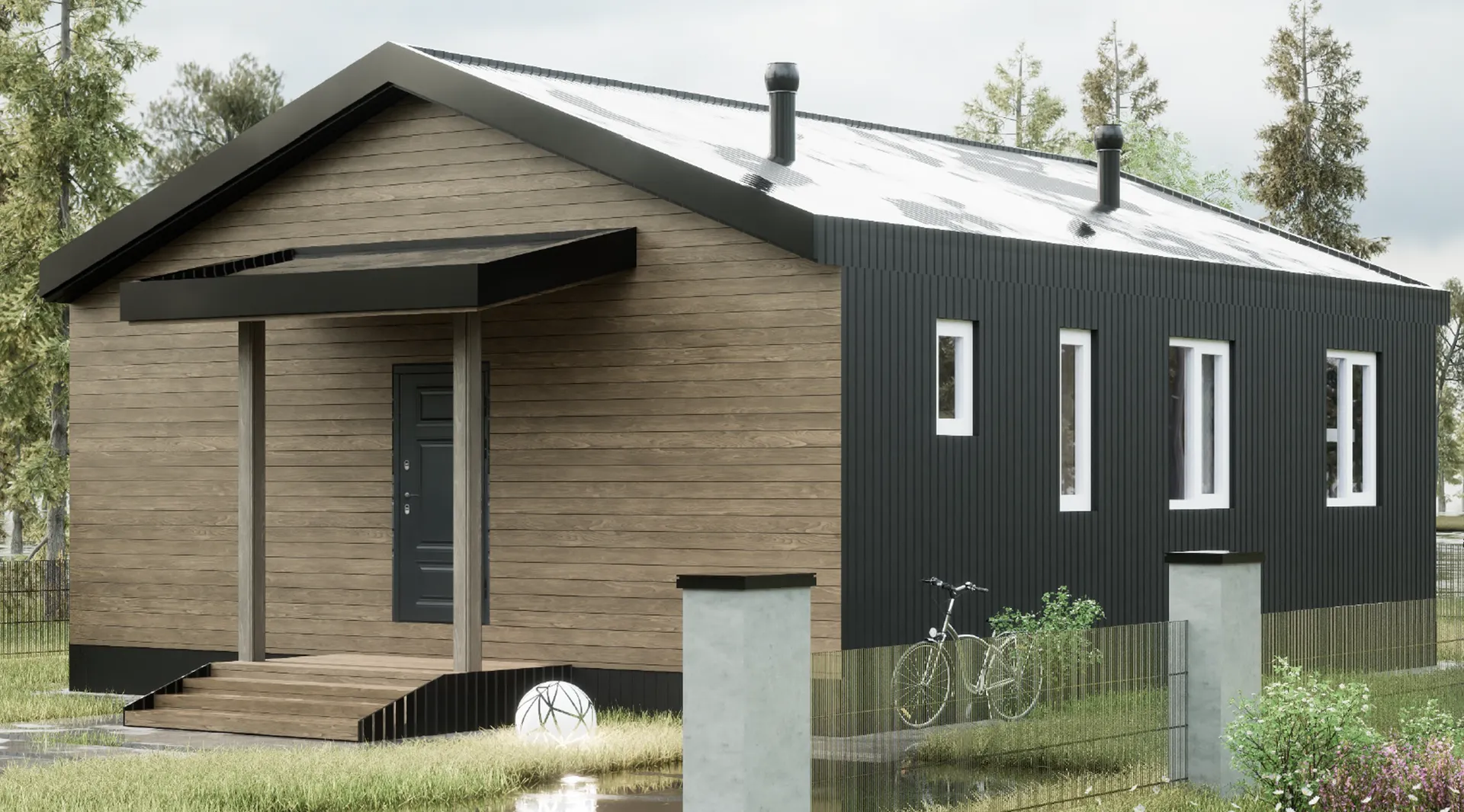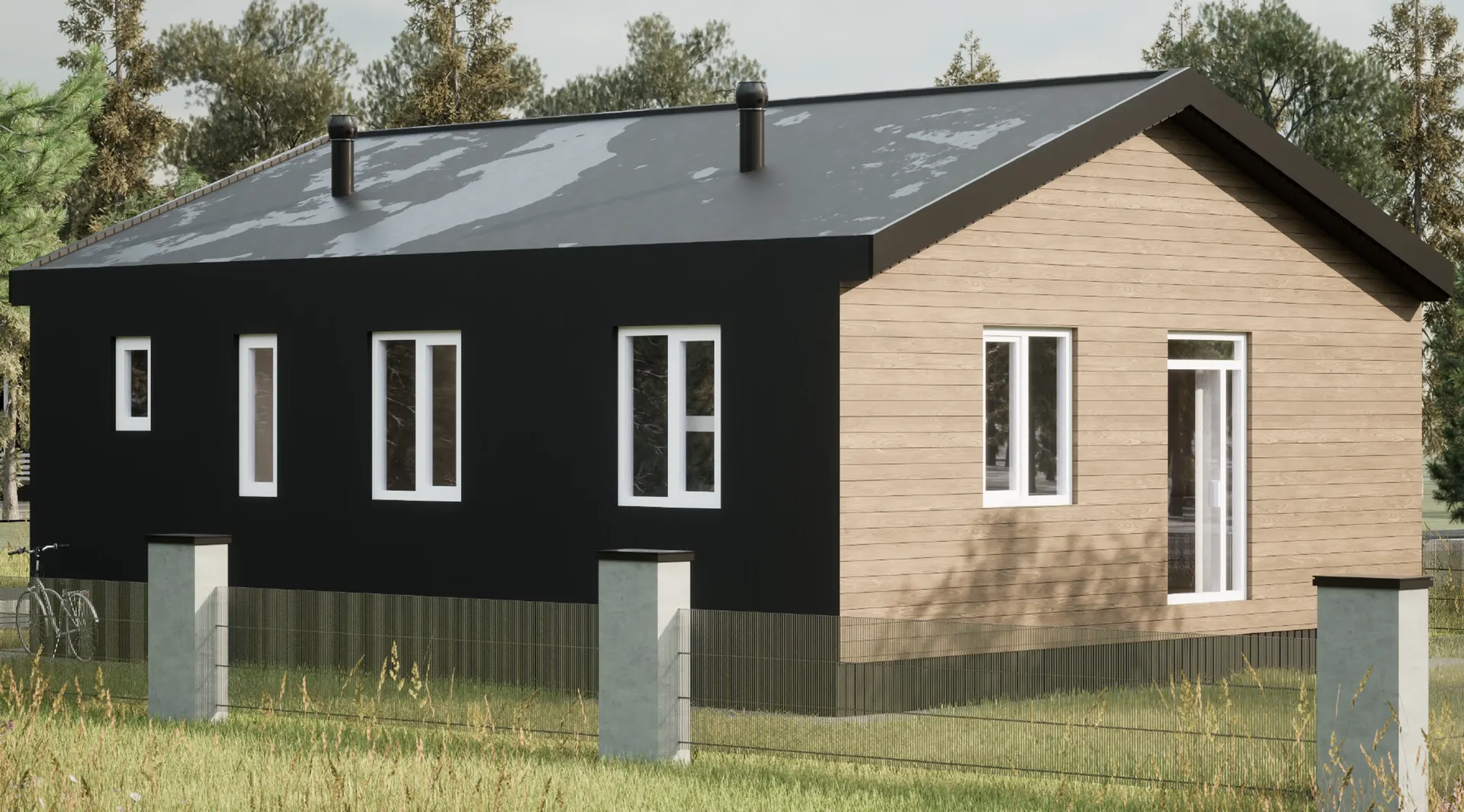 Добро пожаловать в дом, в котором современность встречается с очарованием сельской идиллии. Одноэтажный барнхаус «Залесный» предлагает уютное, но просторное пространство, идеально подходящее для круглогодичного проживания. Стены из SIP‑панелей не только гарантируют тепло и энергоэффективность, но и создают чистый, лаконичный внешний вид, подчёркивающий простоту и элегантность архитектурного стиля. Двускатная крыша с плавным кутом добавляет дому характерный традиционный профиль, а открытое пространство чердака предоставляет удобную дополнительную кладовую, где можно хранить всё, что угодно, от сезонной одежды до спортивного инвентаря. Поток света и свежий воздух — лучшие друзья этого дома. Без балконов и веранд внимание сосредоточено на интерьере, где каждый уголок пропитан светом благодаря большим панорамным окнам. Пространственные и светлые гостиные, открытая кухня с островом создают идеальную среду для семейных встреч, а просторные спальни обеспечивают спокойный отдых после долгих дней. Чистый, но при этом тёплый дизайн подчеркивает уют, а наличие чердака позволяет адаптировать пространство под любые нужды — будь то мастерская, детская комната или просто место для творчества. «Залесный» — это не просто жильё, это ваш личный уголок гармонии в сельской атмосфере, где каждая деталь продумана до мелочей. Сочетание надёжной современной конструкции, эстетической простоты и практичности делает этот барнхаус идеальным выбором для тех, кто ценит комфорт и стиль в одном доме. Воплотите свои мечты о доме, где каждый день начинается с вдохновения и заканчивается ощущением уюта.