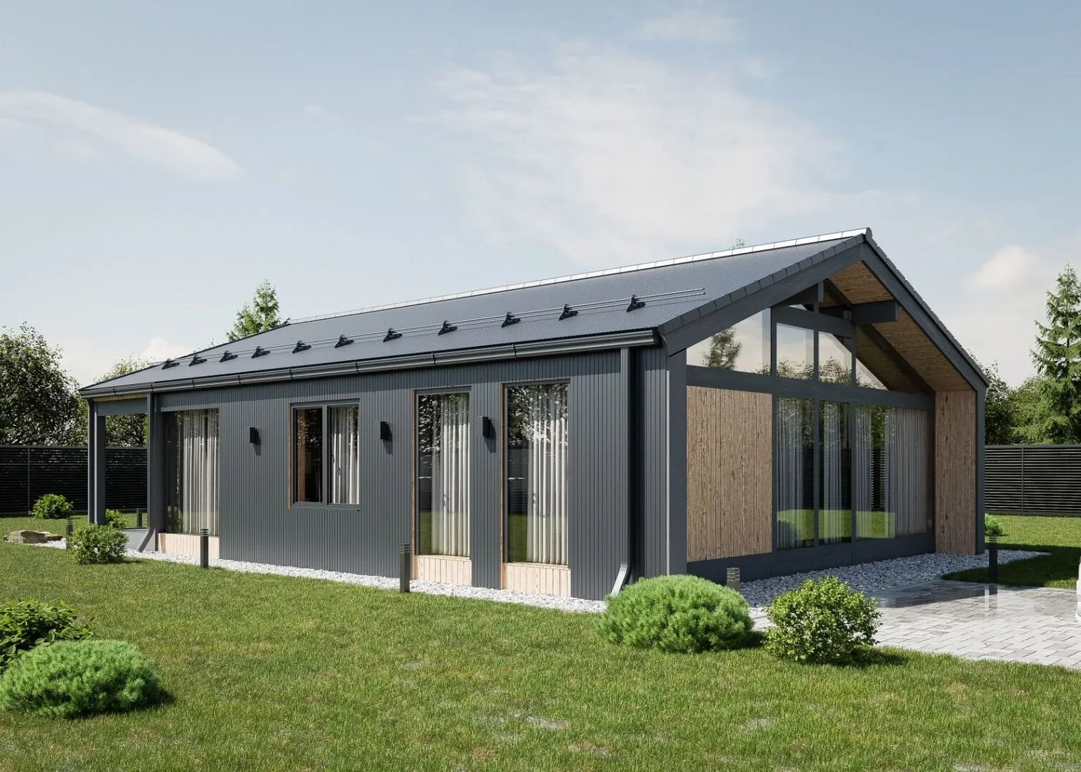 Добро пожаловать в «IBARN‑АР» – уютное, но современное гнездо, где каждый уголок пропитан душой простоты и функциональности. Это единственный надземный этаж, но в нём ощущается лёгкая открытость и пространство: большие световые окна, мягкое природное освещение, свободно открываю­щая панорамой просторную квартиру, где тепло всегда в окружении. Архитектурный стиль барнхаус смело соединяет традиционный характер деревянных банок с современной минимализацией, где стены из высококлассных сэндвич‑панелей PIR создают оптимальный микроклимат даже в сезонных колебаниях погоды. Умный дизайн обеспечивает круглогодичное проживание без лишних забот, благодаря грамотной теплоизоляции, качественной двойной крыше с классическим двускатным профилем и продуманной вентиляции. Один просторный коридор ведет к открытой кухне с обеденной зоной, где можно наслаждаться ароматами свежих продуктов и тихими вечерами. Полнолинейный диванный гарнитур, практичные ящики и встроенный шкаф делают интерьер максимально уютным и организованным. Показатель «терраса» превращает вашу собственную частную площадку в идеальное место для отдыха, выращивания небольших садовых растений или простого обеденного пикника под звездным небом. Внутреннее пространство также адаптировано под ваши нужды: от легкой домашней мастерской до уютного рабочего кабинета, где можно посвятить время любимым делам. В «IBARN‑АР» каждый элемент – от дверных проёмов до полированных деревянных лестничных перил – продуман с любовью к деталям и комфорту. Вы почувствуете, как простые решения гармонично сочетаются с вашими ежедневными задачами, создавая атмосферу домашней теплоты, где каждый день начинается с улыбки и закончится на расслаблённой нотке. Сделайте шаг навстречу мечте об уютном, открытом и функциональном доме, где простота встречается с элегантностью – и почувствуйте, к чему стремится ваш новый дом.