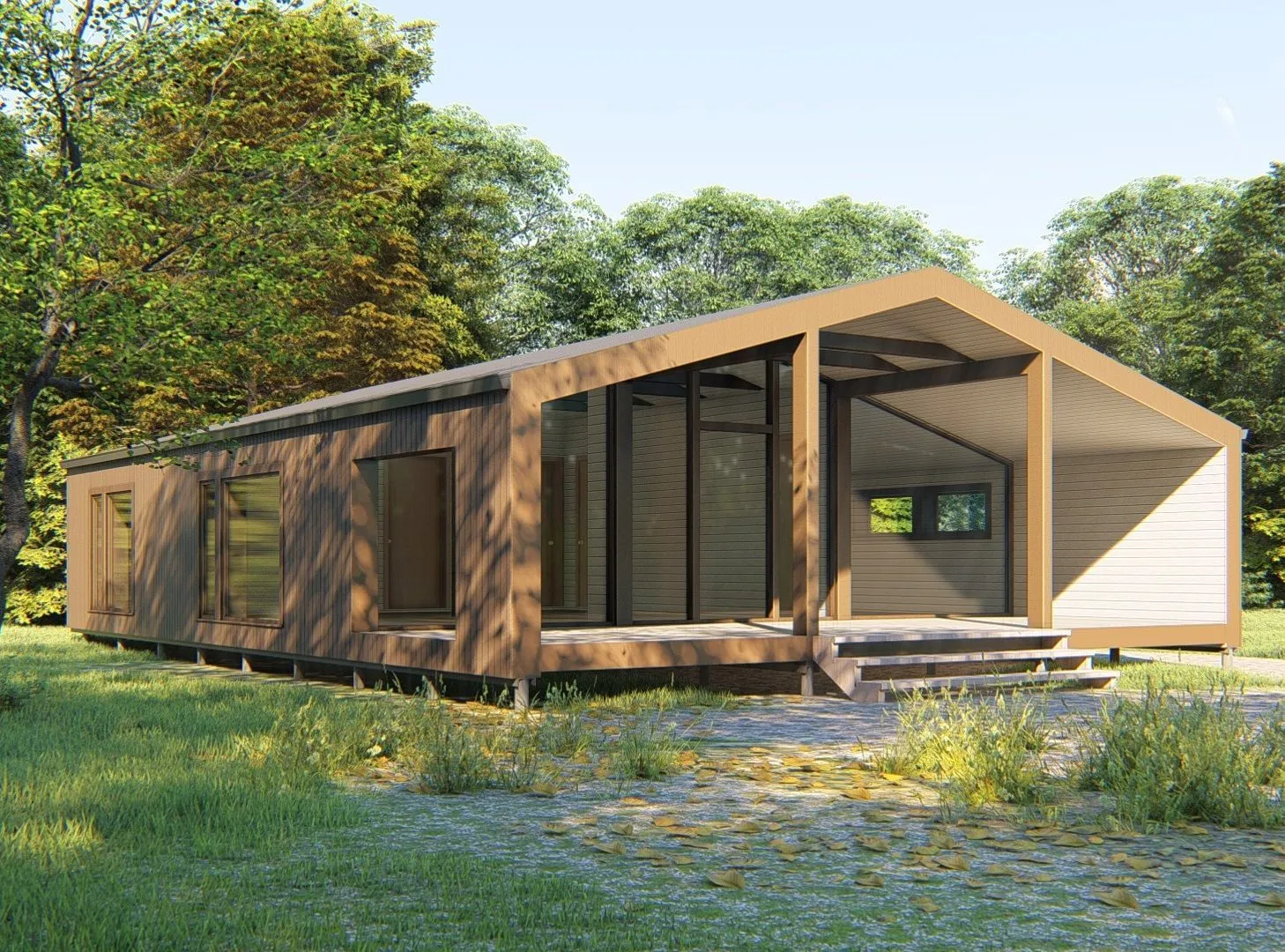 Сердце этого уютного каркасного дома, размером 9,4 × 13 м, — тёплая, светлая гостиная, где каждое утро начинается с ароматом свежего кофе и звука лёгкого ветра, проникающего сквозь открытые деревянные стены. В архитектурном стиле барнхаус простая элегантность сочетается с практичностью: просторные комнаты, открытая планировка, высокая потолочная высота привносят ощущение просторности, а двойные ковыляющие крыши добавляют характер и защищают от непогоды. Благоустроенная терраса под приглашает к бесконечным моментам отдыха — будь то летний барбекю, вечернее наблюдение за закатом или уютные зимние вечера с горячим напитком на открытой террасе. Вся конструкция из дерева обеспечивает тепло, энергоэффективность и естественный экологизм, а круглогодичное проживание делает дом идеальным выбором для семей и тех, кто ценит гармонию с природой. Это место, где каждый элемент задуман, чтобы дарить комфорт и вдохновение, а не просто служить временным укрытием.