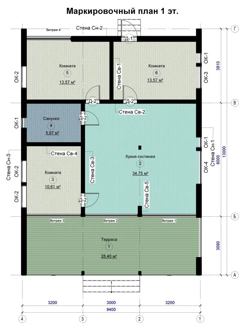 Каркасный дом 9,4х13 м