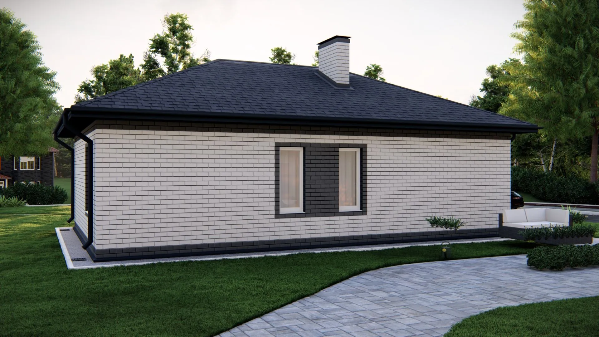 Городской уют и неподдельный комфорт – вот что предлагает «Лютик 25687». Это одноэтажный дом в классическом стиле, где каждый элемент пронизан традицией и заботой о вашем благополучии. Просторный, светлый двор и аккуратный фасад, выполненный из керамзитобетонных блоков, создают ощущение прочности и тепла. Трендовый четырехскатный (вальмовой) кровлевая конструкция не только придает дому элегантность, но и обеспечивает надёжную защиту от непогоды, делая «Лютик» идеальным выбором для круглогодичного проживания. Внутреннее пространство продумано до мелочей: большие окна пропускают день в просторные комнаты, а классические перегородки создают гармоничный баланс между приватностью и общими зонами. Полы из массива дерева и мягкие текстуры подчеркивают уют, а аккуратный интерьер легко адаптируется под ваш стиль жизни – будь то семейное общение, уютные домашние вечера или простое наслаждение тишиной. «Лютик 25687» – это не просто дом, а место, где каждая деталь создаёт атмосферу комфорта и стабильности, даря вам ощущение, будто вы живёте в истинном укрытии от городской суеты.