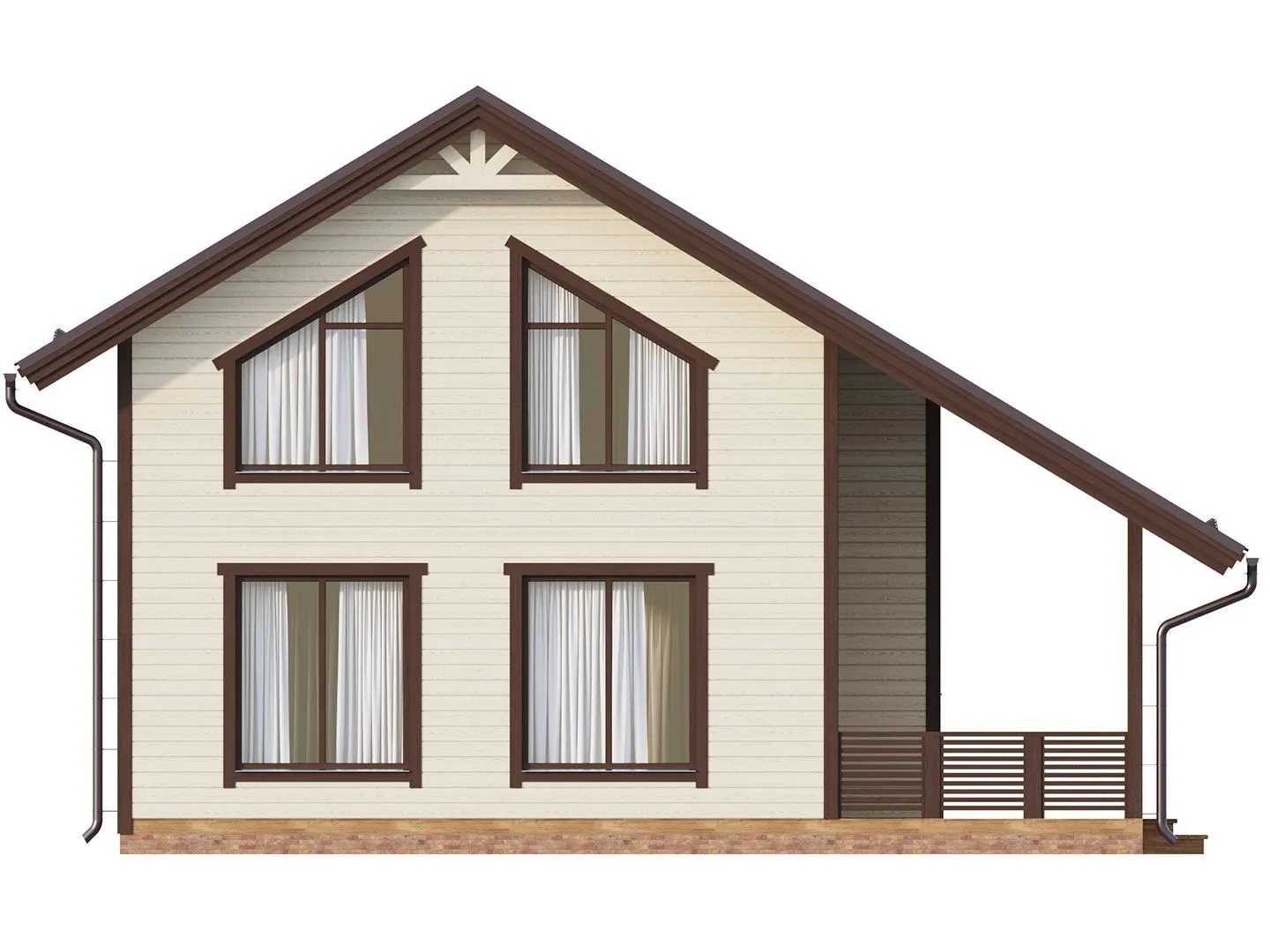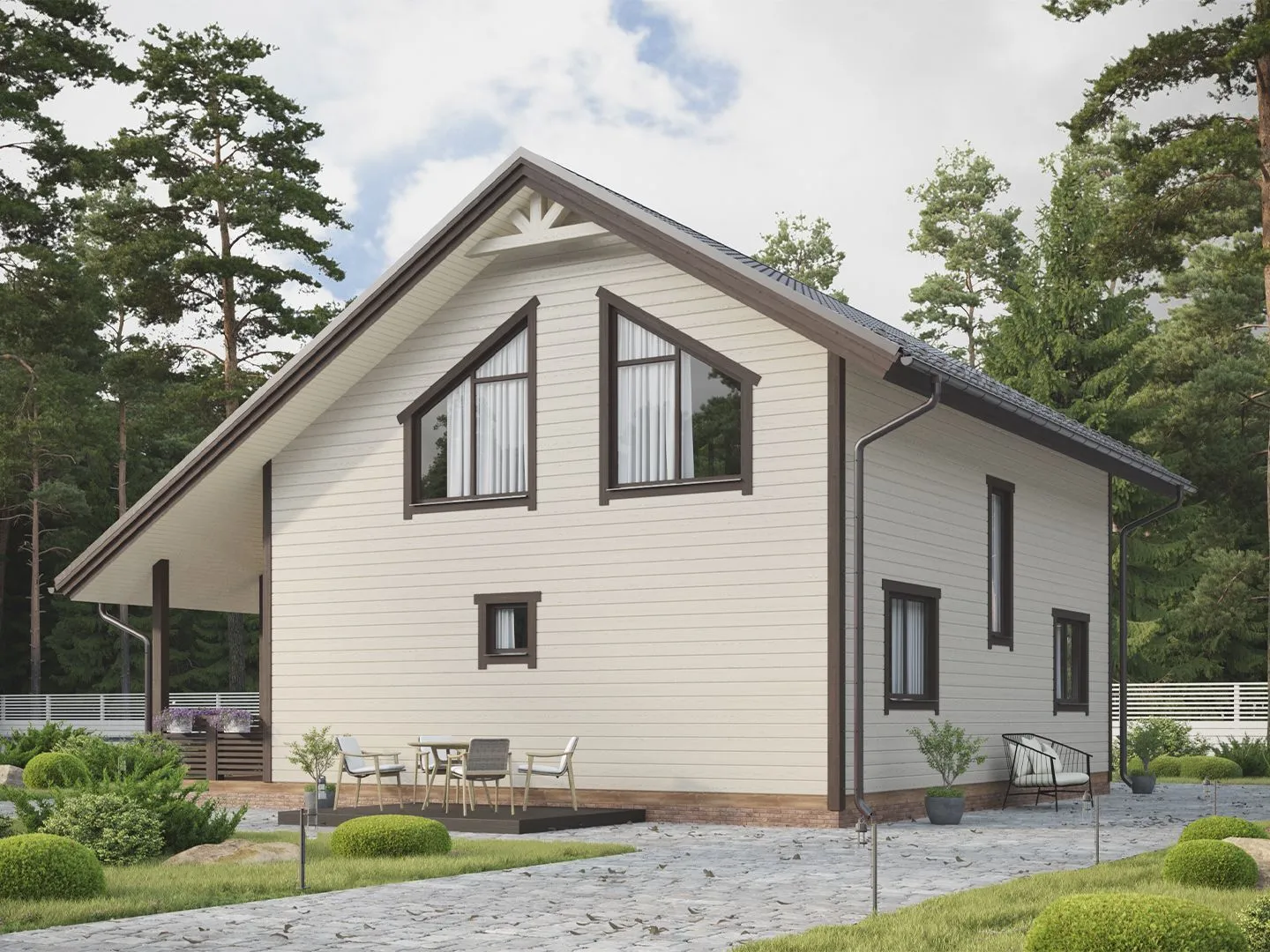 Дом «Максимачева» — это воплощение классики в гармонии с природой. Походя по просторным подъёмным коридорам, вы сразу почувствуете уют и тёплую атмосферу, характерные для деревянных конструкций. Двухэтажный фасад с традиционной двускатной крышей придаёт дому аутентичный, при этом надёжный и теплый вид, способный выдержать любые климатические условия. Этажи пропитаны светом, а на втором уровне открывается живописный вид на прилегающую территорию, благодаря просторной террасы, где можно проводить время в кругу семьи, наслаждаясь свежим воздухом и звуком природы. Подвал с чердачным пространством становится дополнительной комнатой для хранения, творчества или уютного рабочего уголка. Отсутствие балконов, веранд и прицепного гаража подчёркивает чистоту и простоту внешнего облика, а при этом все зоны дома рассчитаны на комфортный круглетажный проживание, обеспечивая полный комфорт даже в самые холодные и жаркие периоды года. Такой дом приглашает к спокойной жизни, где каждый момент становится событием.