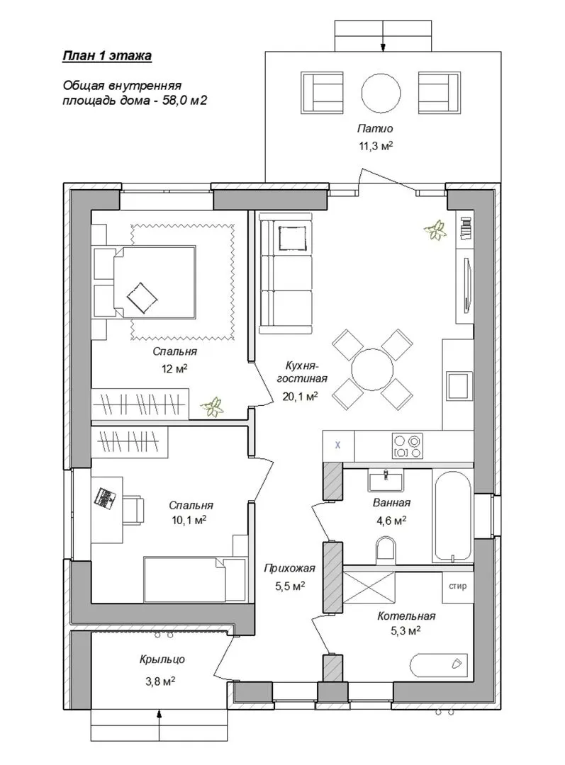 Площадь дома 69 м2