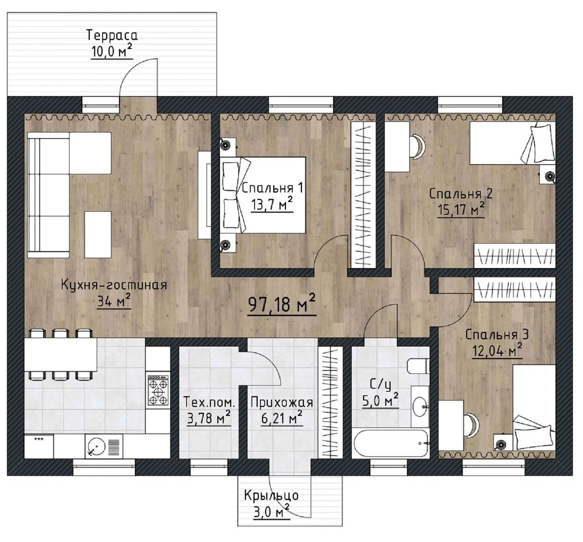 Площадь дома 97 м2