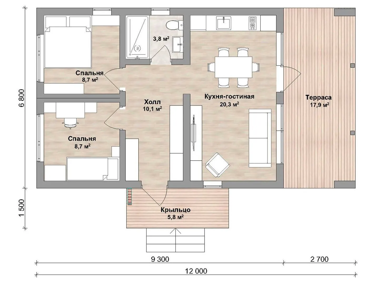 Площадь дома 69 м2