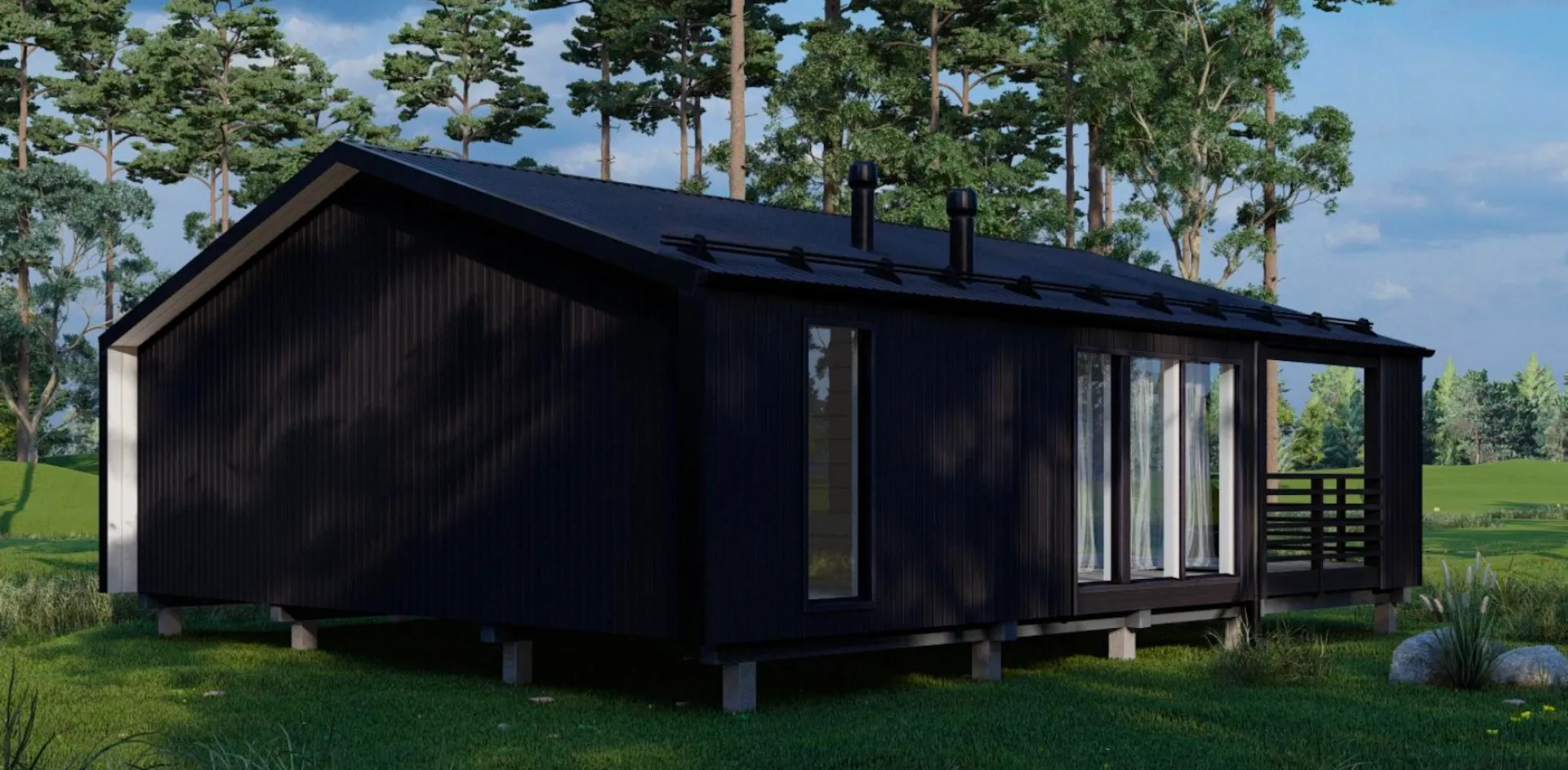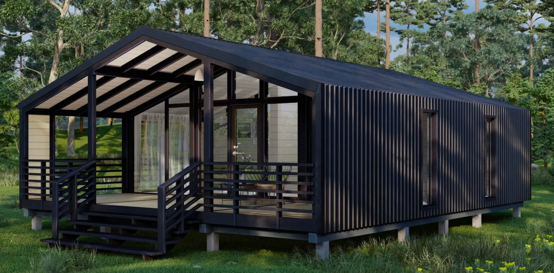 Надёжный, уютный и в то же время стильный дом, созданный в современном модульном стиле, – вот что предлагает модульный дом FL 43 (КР 43). Единый надземный уровень, без перегородок и лишних этажей, даёт ощущение простора и свободы. Круглогодичное проживание обеспечено качественной теплоизоляцией модульных стен, а двойной, два‑скатный каркасный кровельный элемент гарантирует надежную защиту от дождя и снега. Внутри каждого помещения встречается свет и простор, а естественный акцент на древесных стенах создаёт атмосферу тепла, напоминающую о старом барнхаусе, но при этом предлагая современный комфорт. Главной привлекательной чертой этого дома является просторная терраса, открывающая широкие виды и создающая дополнительное пространство для отдыха и барбекю. Наличие деревянного каркаса не только придаёт дому живую и «домашнюю» ауру, но и обеспечивает превосходную звукоизоляцию и энергоэффективность. Дом рассчитан на семью, стремящуюся к гармоничному сочетанию классической архитектуры и современной техники. Нет необходимости в поиске подвала или гаража – все, что вам нужно, уже предусмотрено в конструкции. Таким образом, FL 43 – это не просто модульный дом, это уютный уголок для семьи, где каждый метр прожитых часов наполнен теплом, светом и душевной атмосферой. Приглашаем вас оценить его по достоинству и сделать свой первый шаг к новой, комфортной жизни.