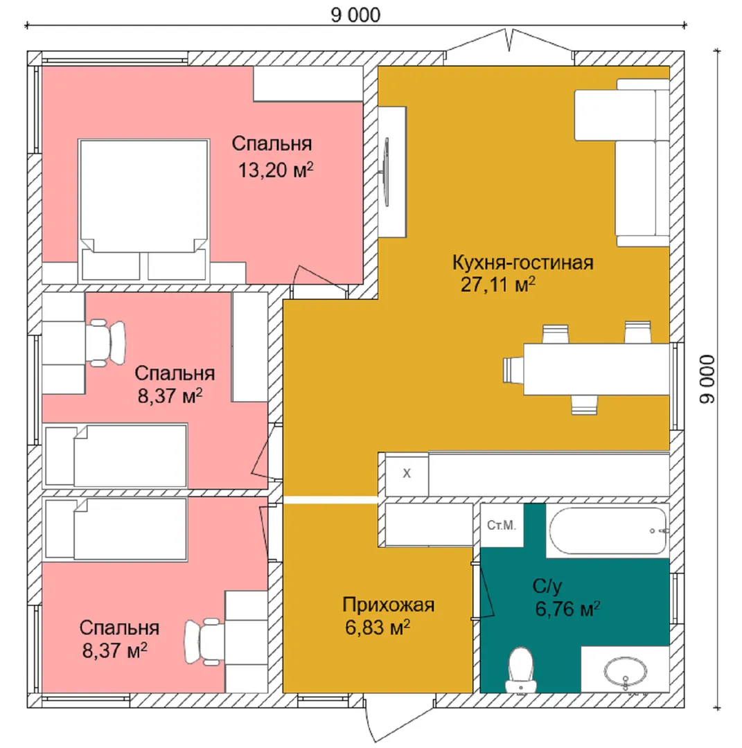 72 м2