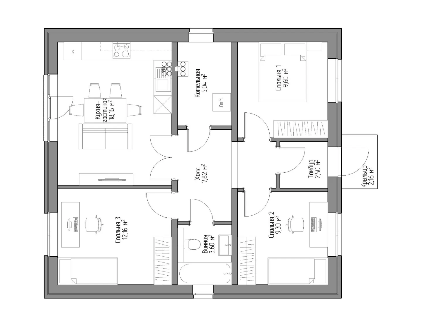 Одноэтажный дом БР-154
