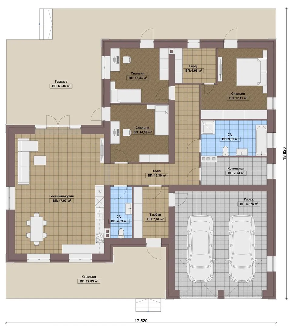 Заказать конусльтацию по:Одноэтажный дом FIXPLANS - 1853