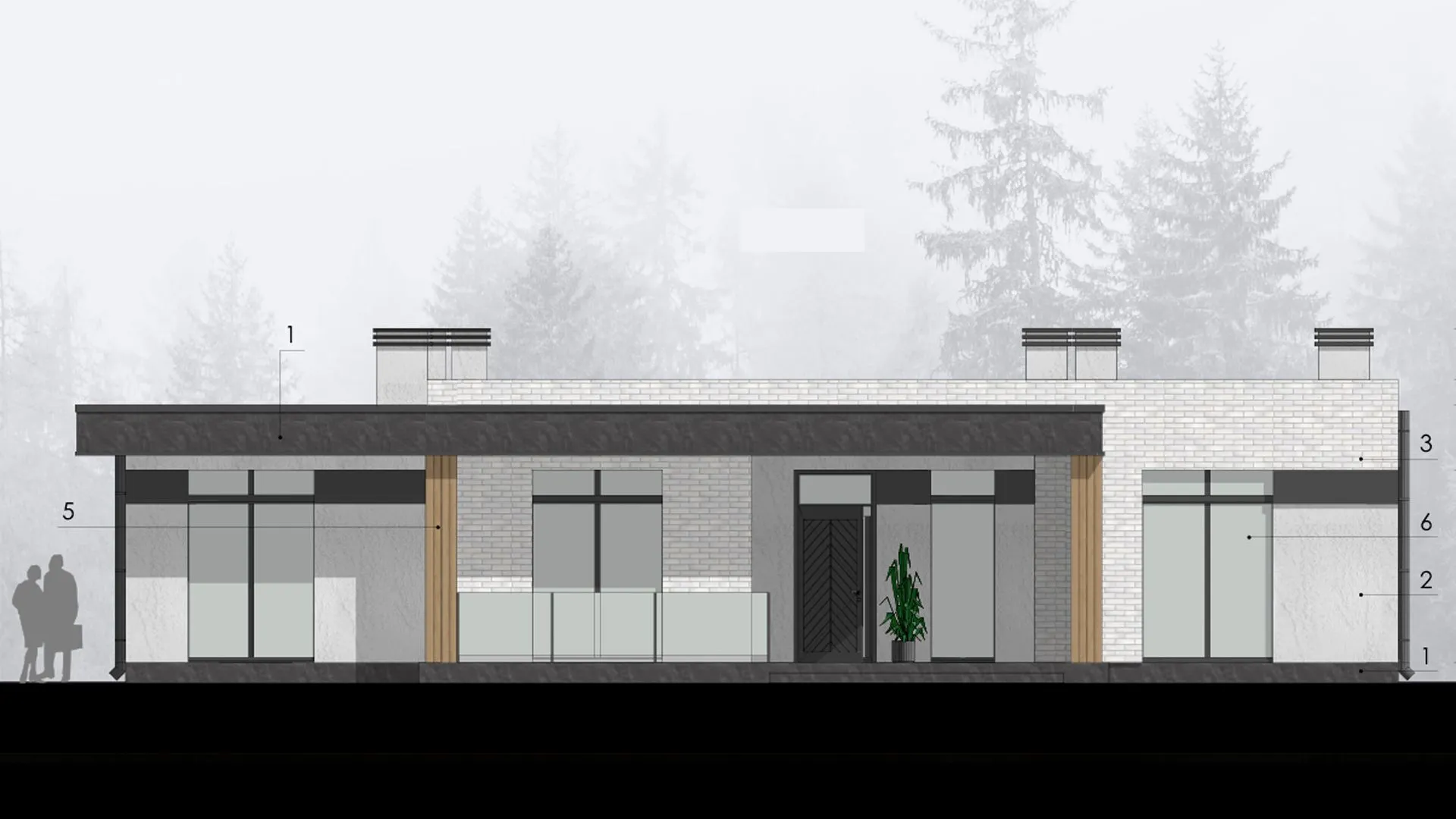 Заказать конусльтацию по:Одноэтажный дом с верандой в стиле минимализм