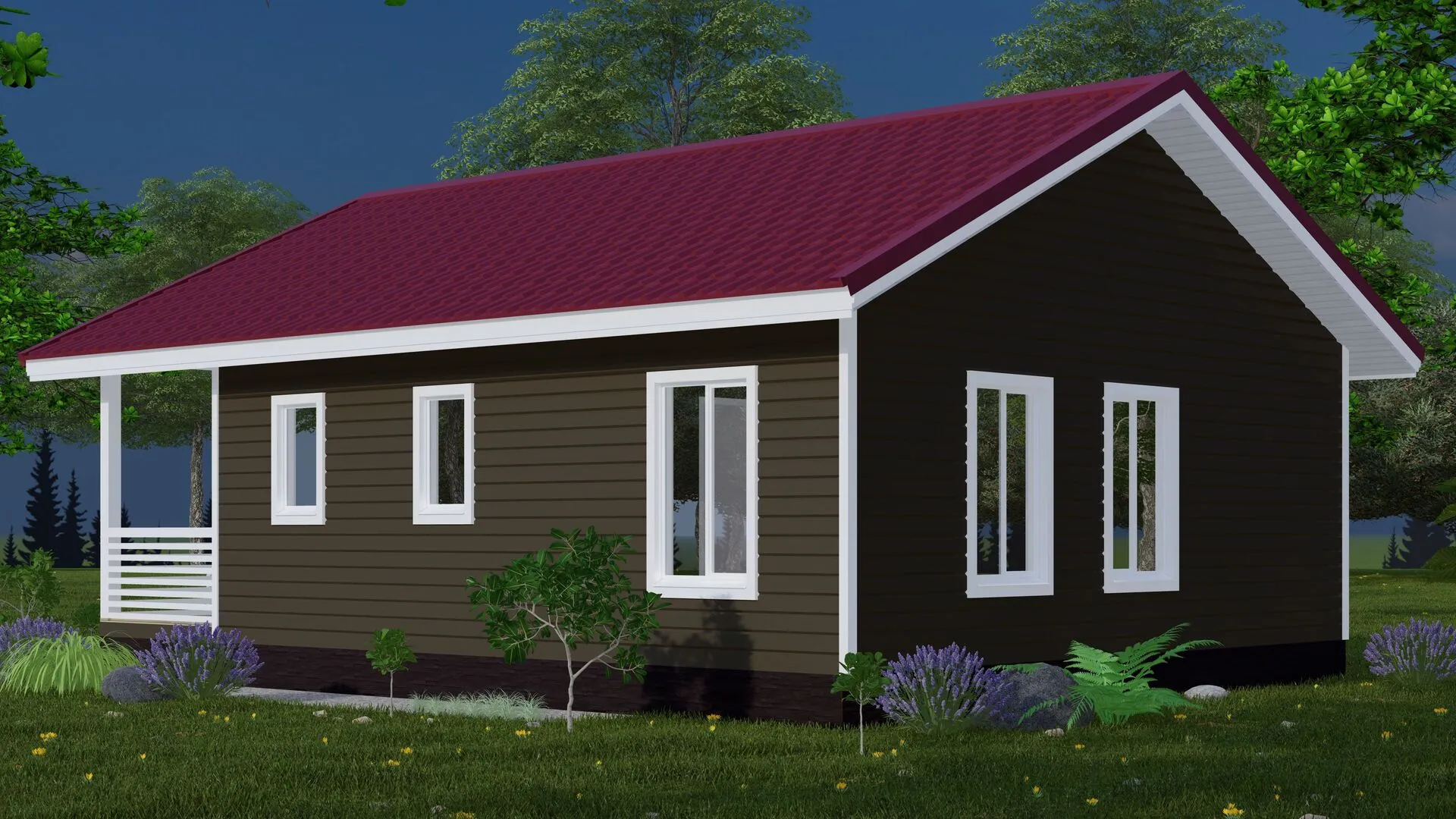 Одноэтажный каркасный дом 8,0х10,0м К-26