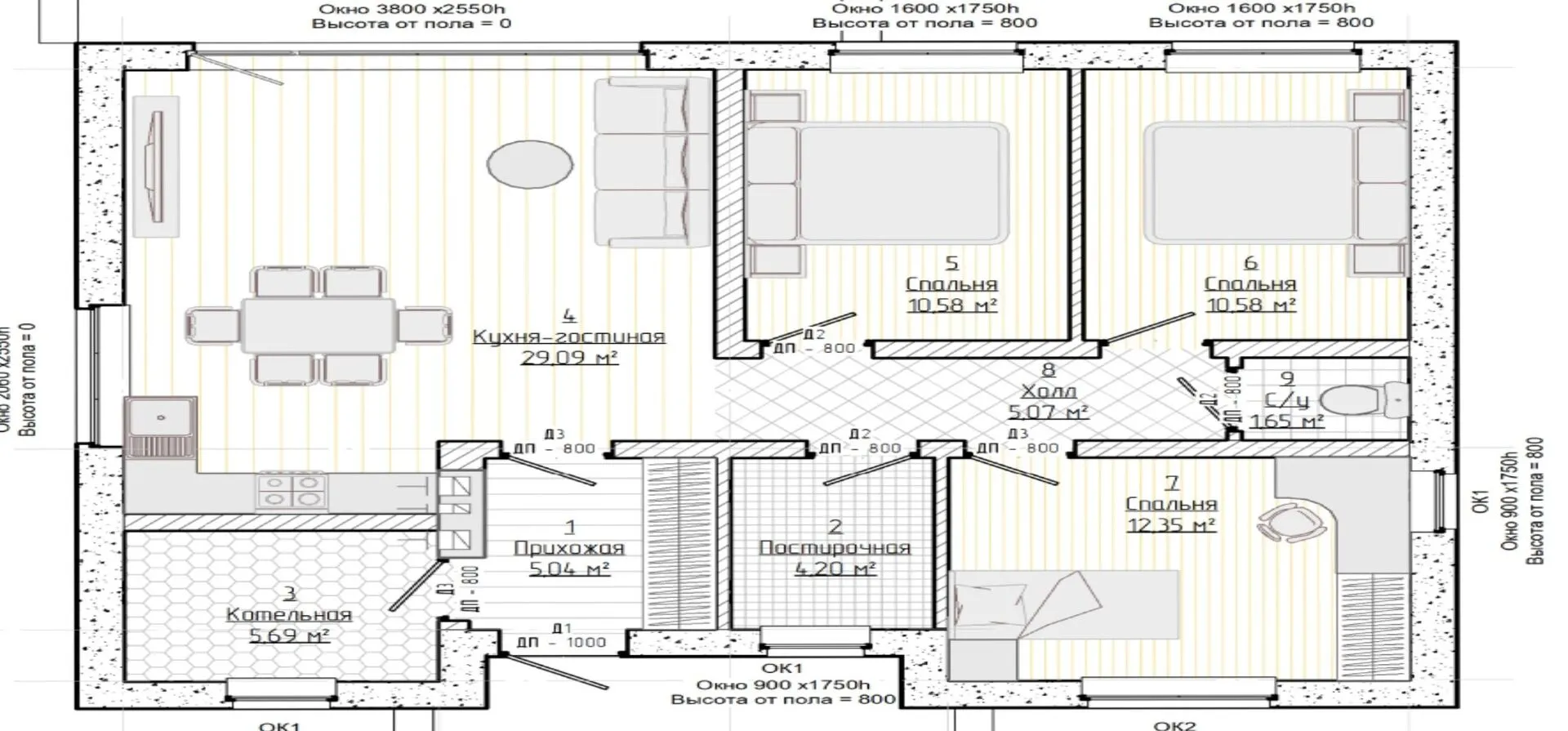 Проект 85 м2 три спальни