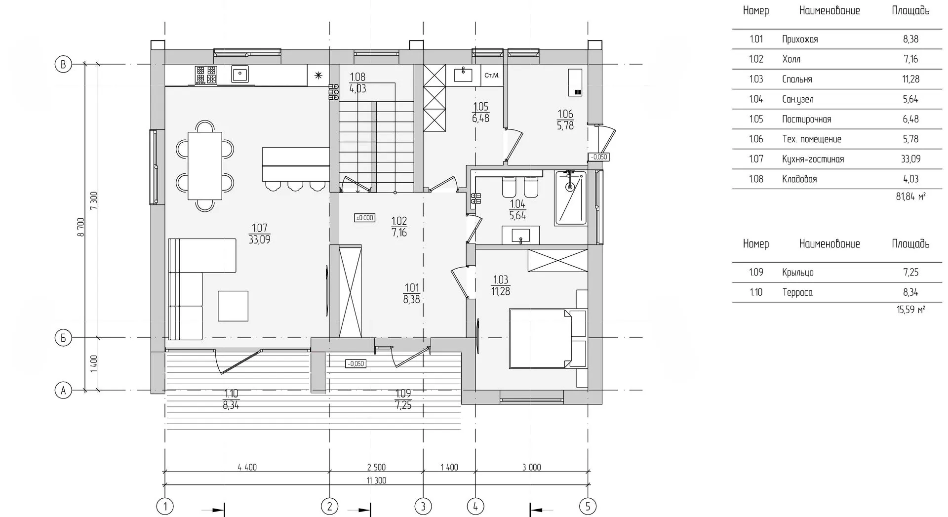 Проект Каменный одноэтажный дом с террасой
