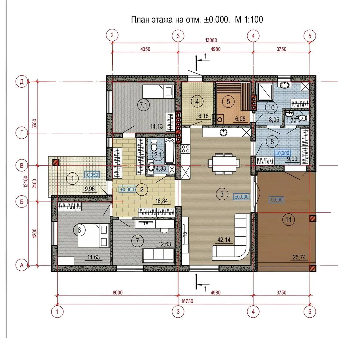 Проект одноэтажного жилого дома 171.38 кв.м.