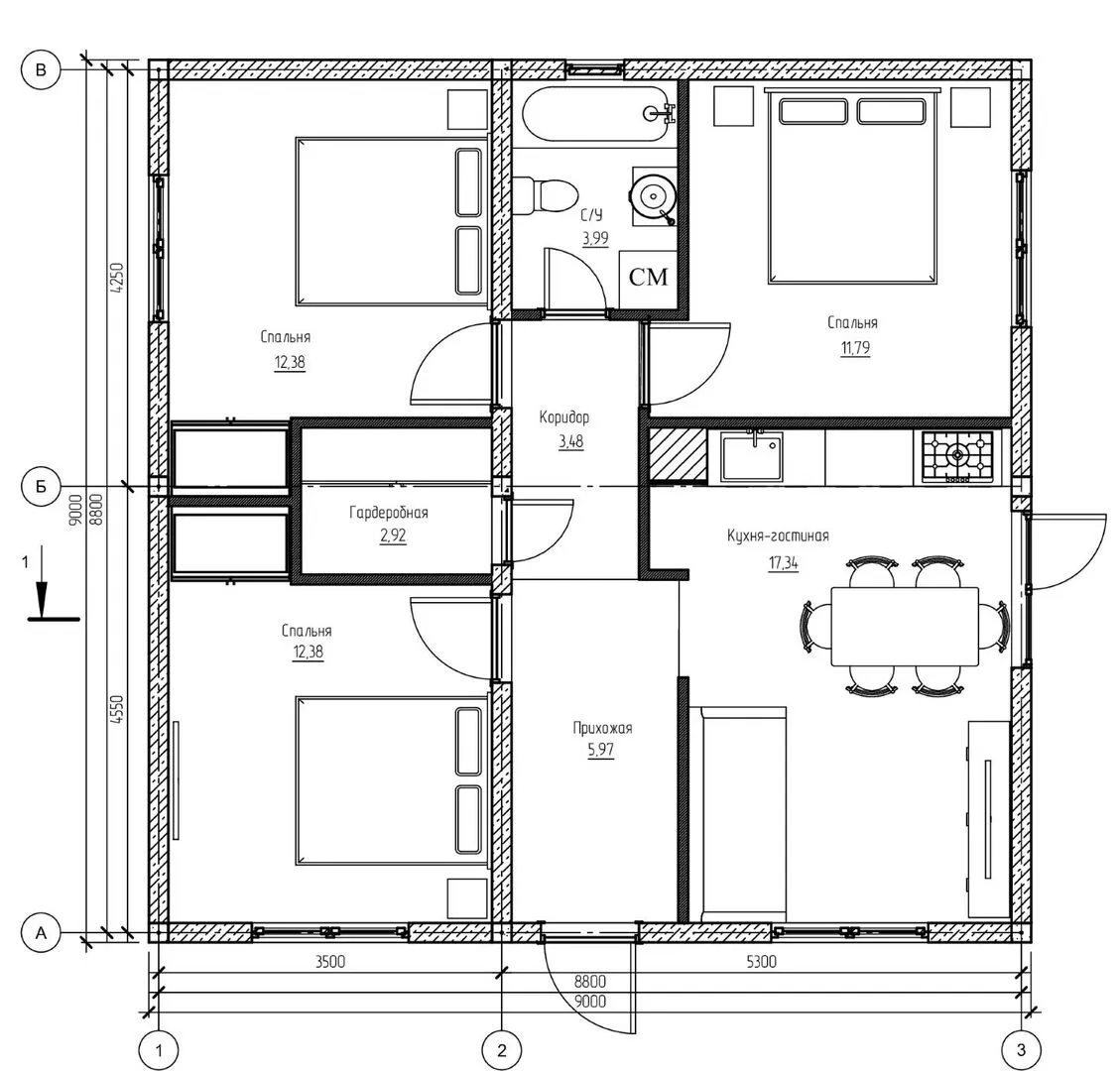 Одноэтажный дом Смарт 9х10