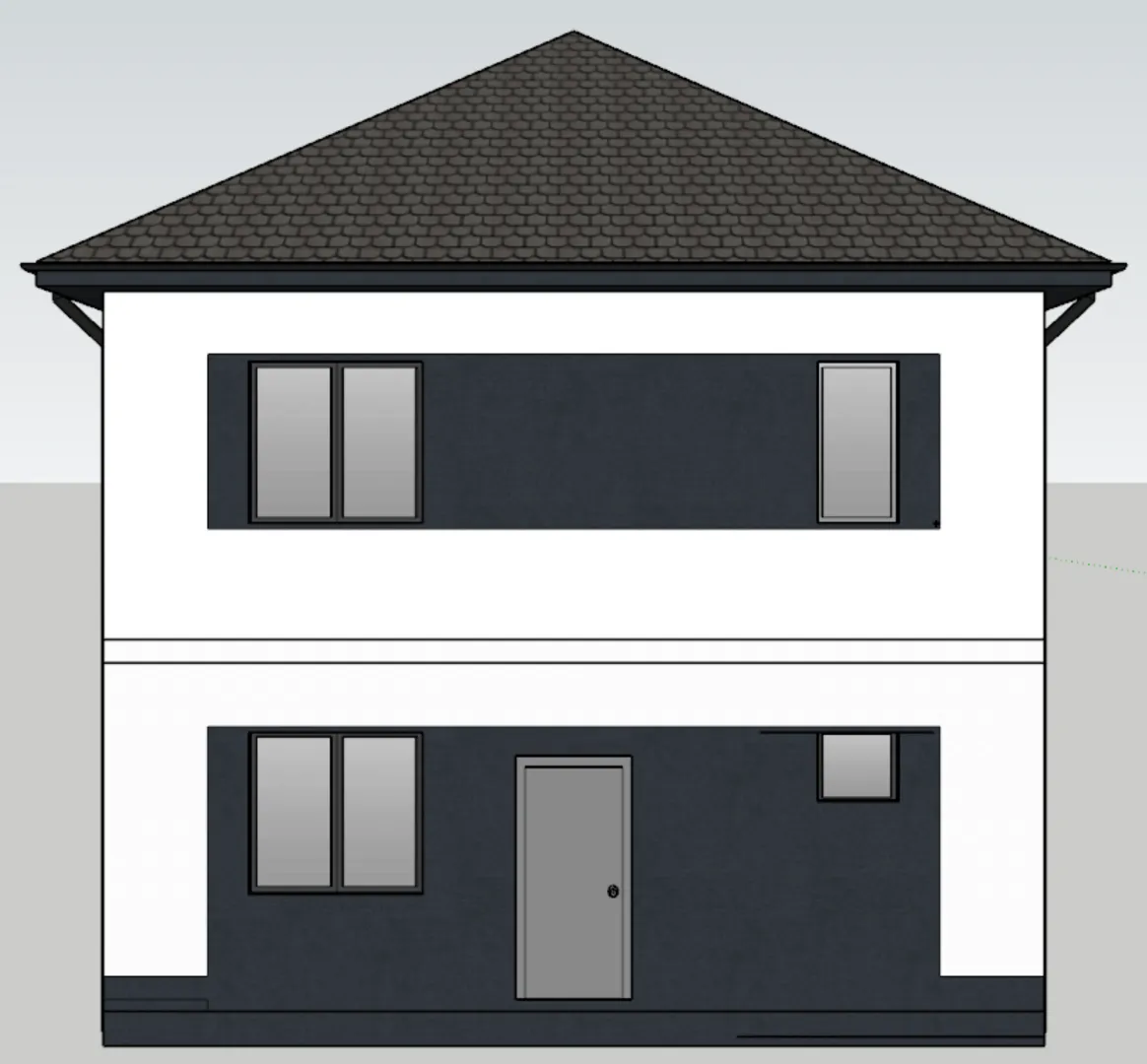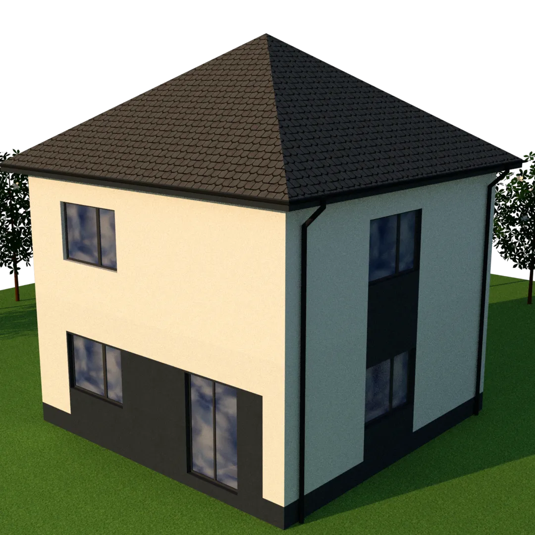Современный дом KV‑03 – это воплощение европейского стиля, где каждая деталь продумана до мелочей. Двухуровневая планировка придаёт ощущение открытого пространства, не перегружая интерьер. Экологически чистый газобетонный фасад гарантирует отличную теплоизоляцию и долговечность, а четырёхскатная (вальмовая) крыша создаёт мягкий и гармоничный облик, способный украсить любой ландшафт. Дом рассчитан на круглогодичное проживание: от просторных прихожих до светлых, воздушных комнат с высокими потолками, каждый уголок радует простором и естественным освещением. Внутреннее пространство – это настоящий комфорт: большая открытая гостиная, где соединяется кухня и столовая, создавая непрерывность и ощущение единства. Удобные спальни расположены на обоих этажах, предоставляя спокойную и уединенную обстановку. Пристроенное чердачное помещение открывает перспективы для хранения вещей, создания мастерской или домашнего офиса. Отсутствие внешних балконов и веранд не мешает ощущению свежести и открытости – за окнами открывается живописный ландшафт, а просторный внутренний двор дарит ощущение уединённого уголка на открытом воздухе. Дом KV‑03 – это идеальное решение для тех, кто ценит простоту, экологичность и современный комфорт. Его элегантный дизайн и продуманная функциональность делают его привлекательным выбором для семей, ищущих уют и стиль в одном. Позвольте себе наслаждаться каждым моментом в этом гармоничном пространстве и сделайте шаг к своему новому дому уже сегодня.
