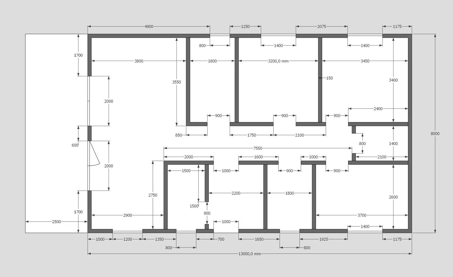 Толщина внутренних перегородок