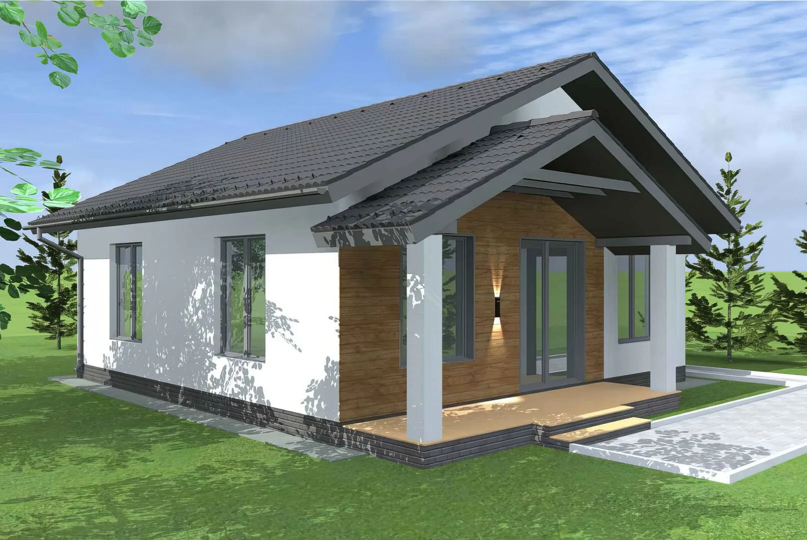 Одноэтажный дом в современном стиле THS-0014