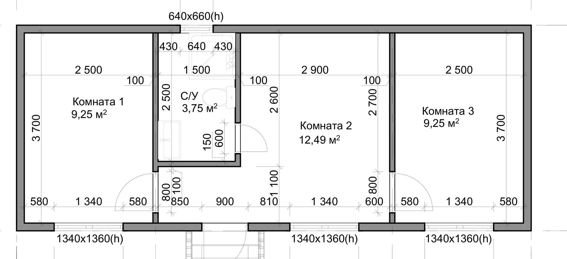 Толщина внутренних перегородок
